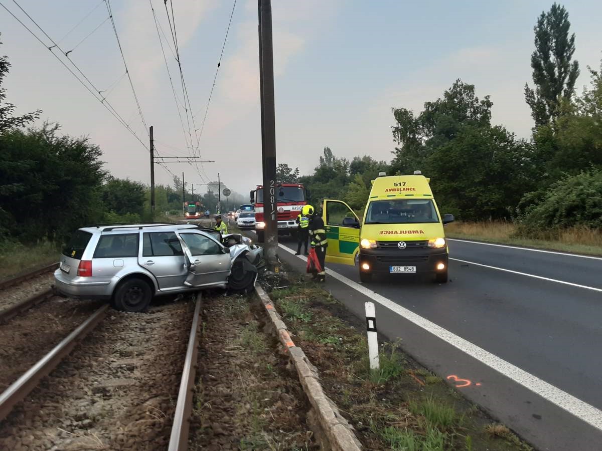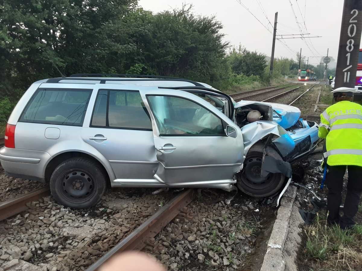 Osobní vozidlo skončilo v kolejišti MHD