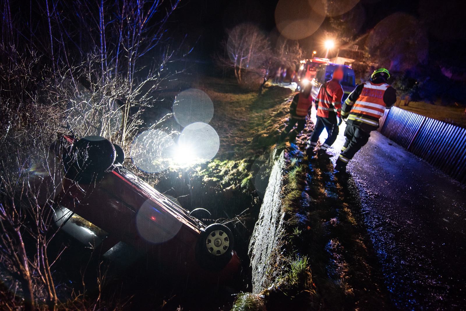 Vozidlo sjelo mimo komunikaci a převrátilo se na střechu