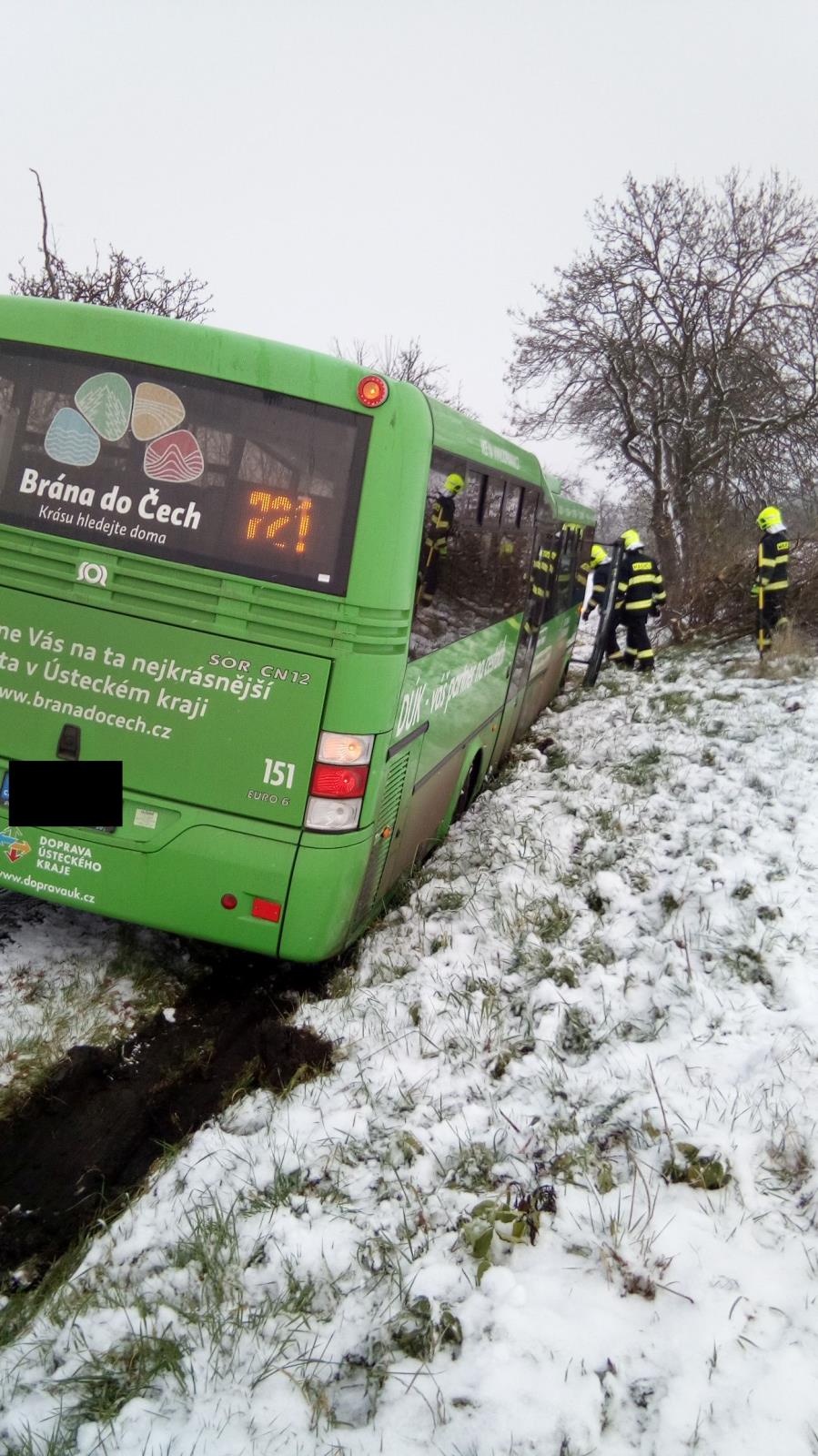 1.12.2020 Jednotky ze stanic Most a Bitozeves vyprostily linkový autobus, který zapadl do příkopu u obce Havraň, okres Most. Autobus byl opřený dveřmi o stěnu příkopu tak, že pět cestujících a řidič nemohlo vystoupit. Nikdo nebyl zraněn.