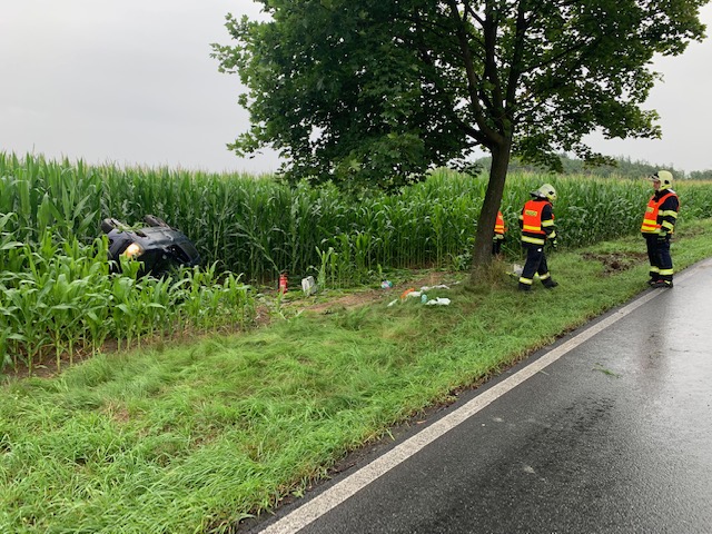 28. 7. 2021 16:15 Dvě hasičské jednotky zasahovaly u dopravní nehody osobního auta u obce Hošťka, okres Litoměřice. Při nehodě bylo pět lidí lehce zraněno. Vzala je do péče Zdravotnická záchranná služba. Auto bylo převrácené na bok v kukuřičném poli. Silnice byla průjezdná kyvadlově.