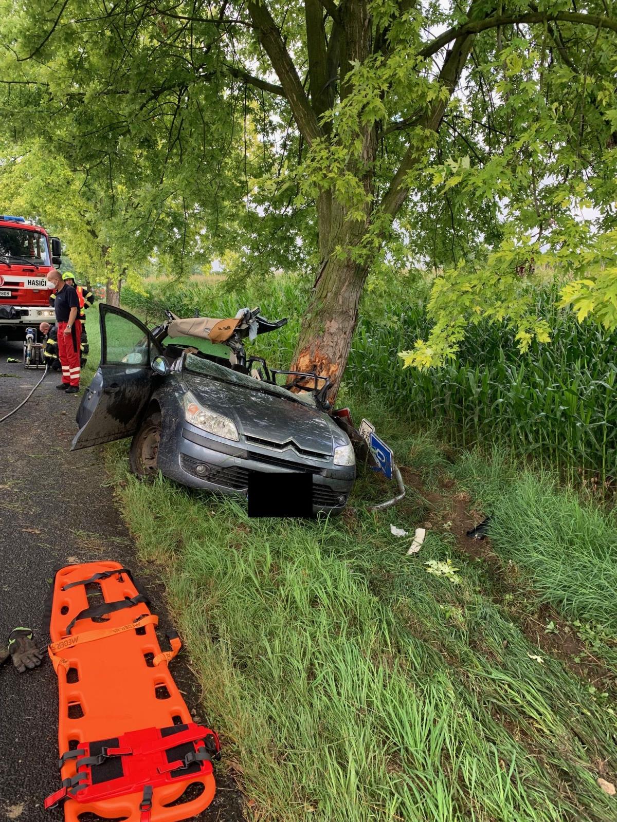 28. 7. 2021 O dvě hodiny později vyjely dvě jednotky k dopravní nehodě osobního auta na stejné silnici u obce Hošťka, okres Litoměřice. Auto narazilo do stromu. Hasiči museli z havarovaného vozu vyprostit zraněného člověka. Do nemocnice jej dopravil vrtulník letecké záchranné služby.