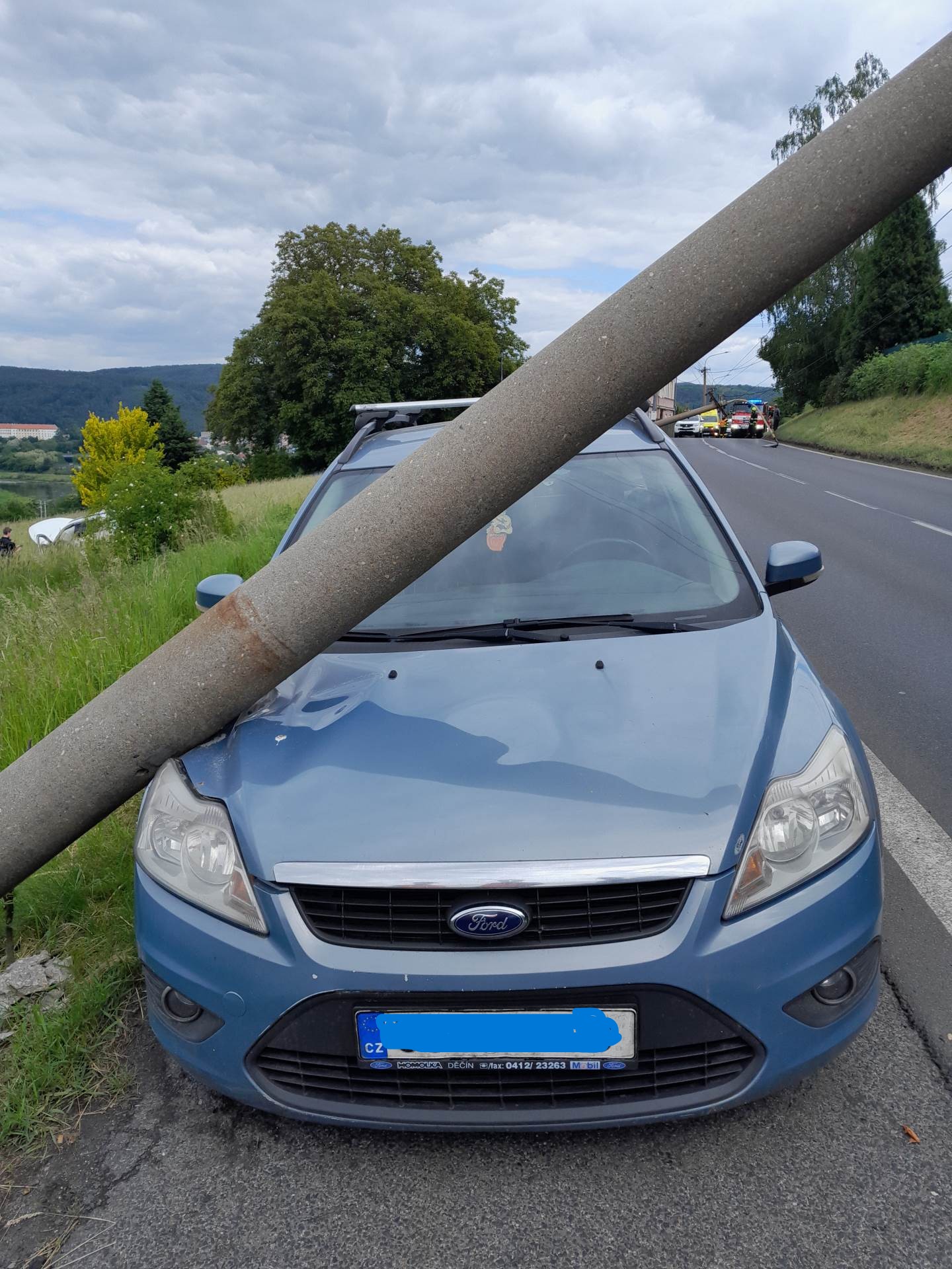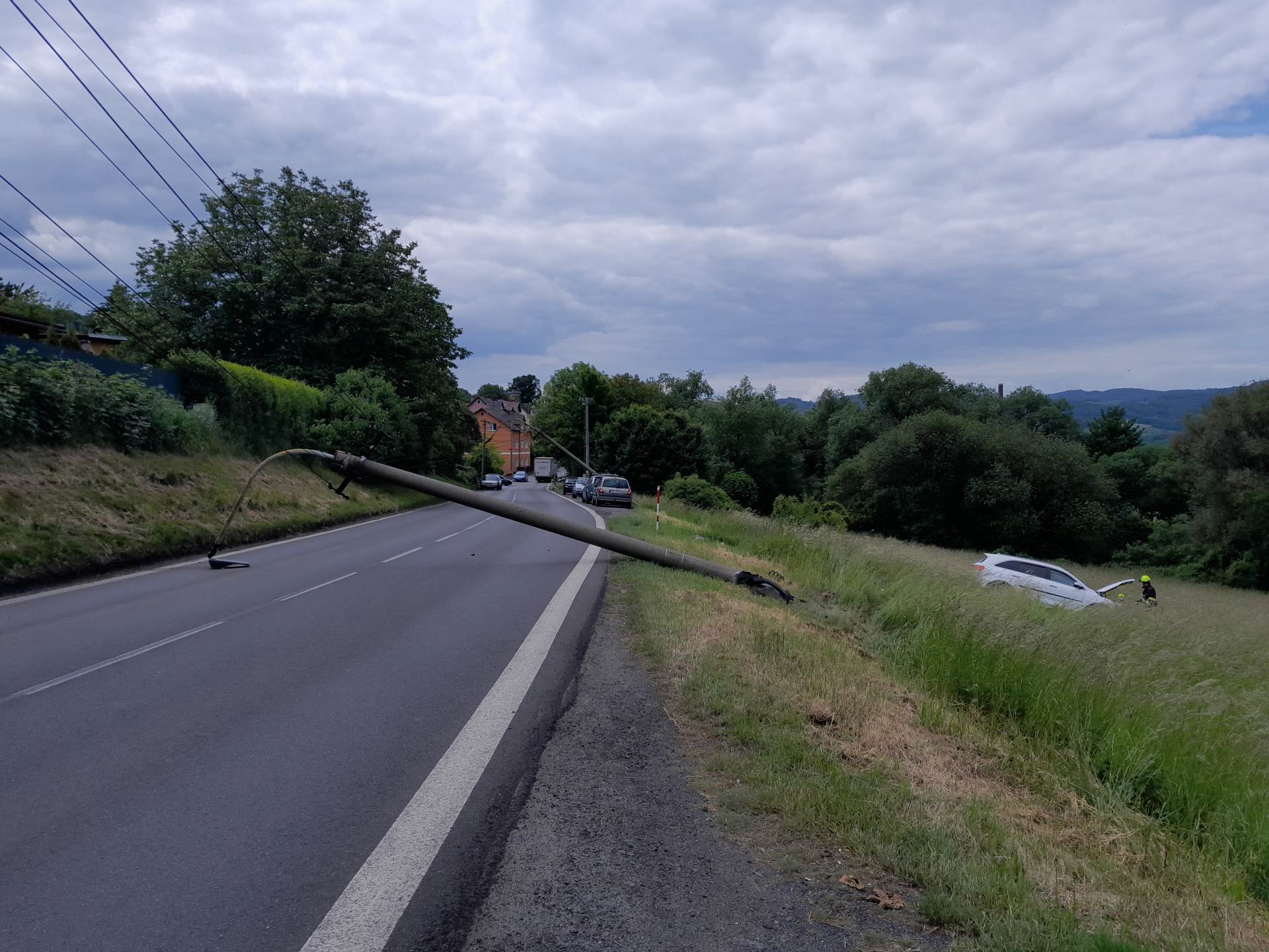 Děčín – Byla to chvíle, která trvala sotva několik vteřin, ale její následky paralyzovaly jednu z hlavních dopravních tepen města na dlouhé hodiny. V úterý 27. května přesně v 11:41 hodin narušil všední dopoledne rachot ohýbaného kovu a křupání betonu. V Litoměřické ulici havaroval osobní automobil, jehož smyk a následný náraz do betonového sloupu elektrického vedení spustil dramatickou dominovou reakci.