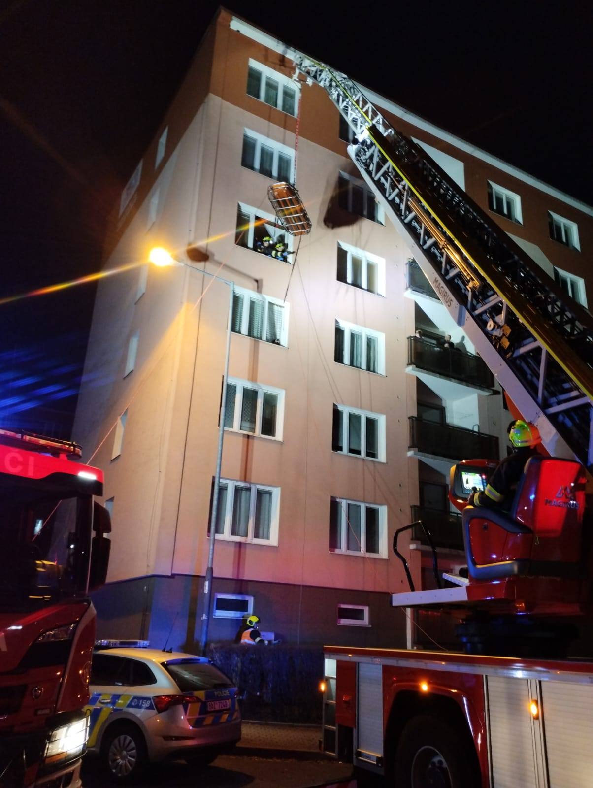 Osobu, která byla v bytě, se podařilo stabilizovat a připravit na transport. Pomocí transportní vany, která je standardním vybavením pro záchranné situace tohoto druhu, byla osoba umístěna do vhodné polohy pro bezpečné spuštění z výšky. Tento krok byl klíčový nejen z hlediska zajištění komfortu pacienta, ale také pro eliminaci jakéhokoliv rizika při samotném transportu.