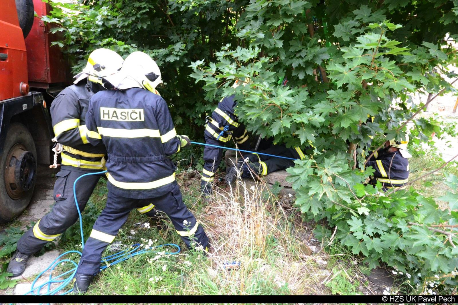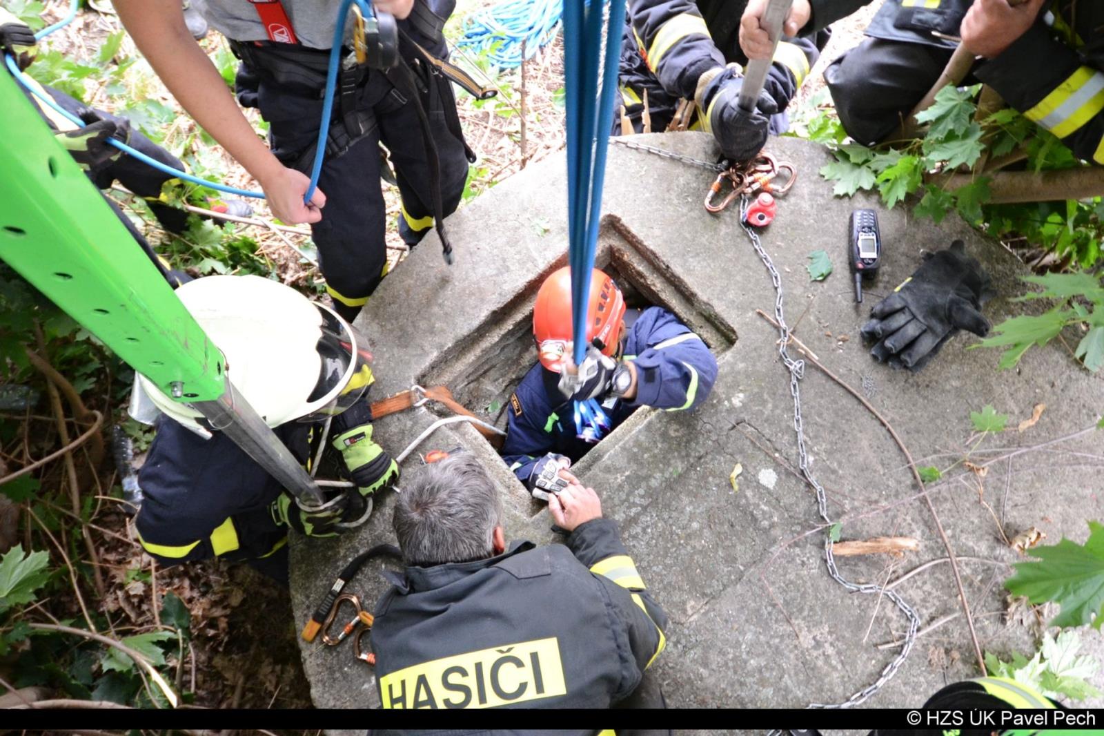Vytažení člověka ze studny Hasiči chlapce vytáhli ze studny během 14 minut.