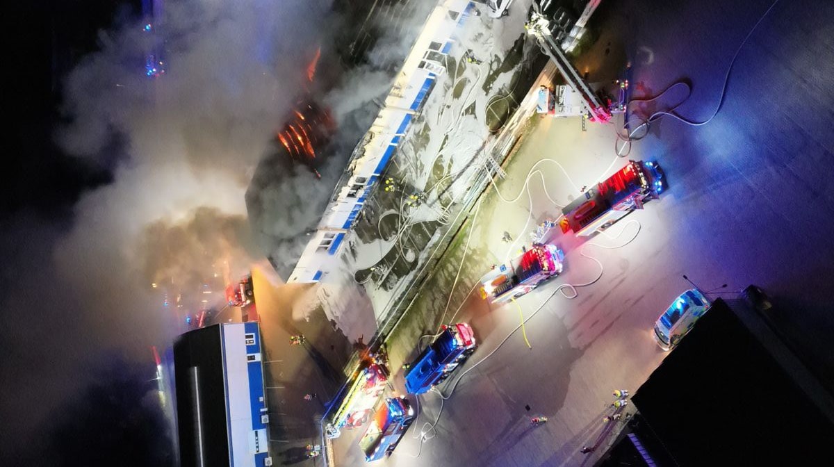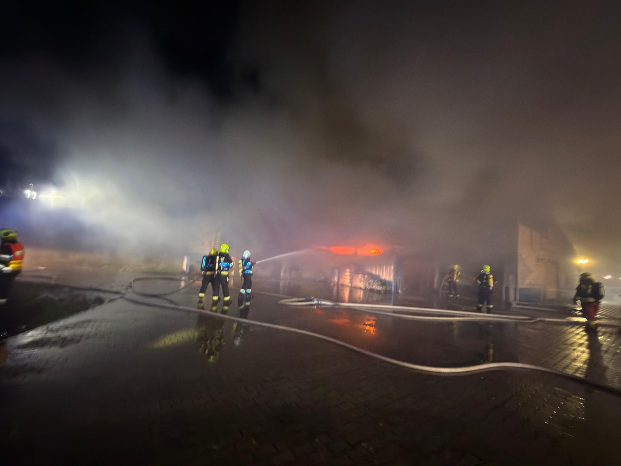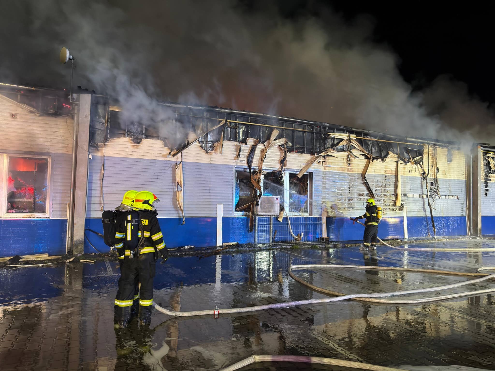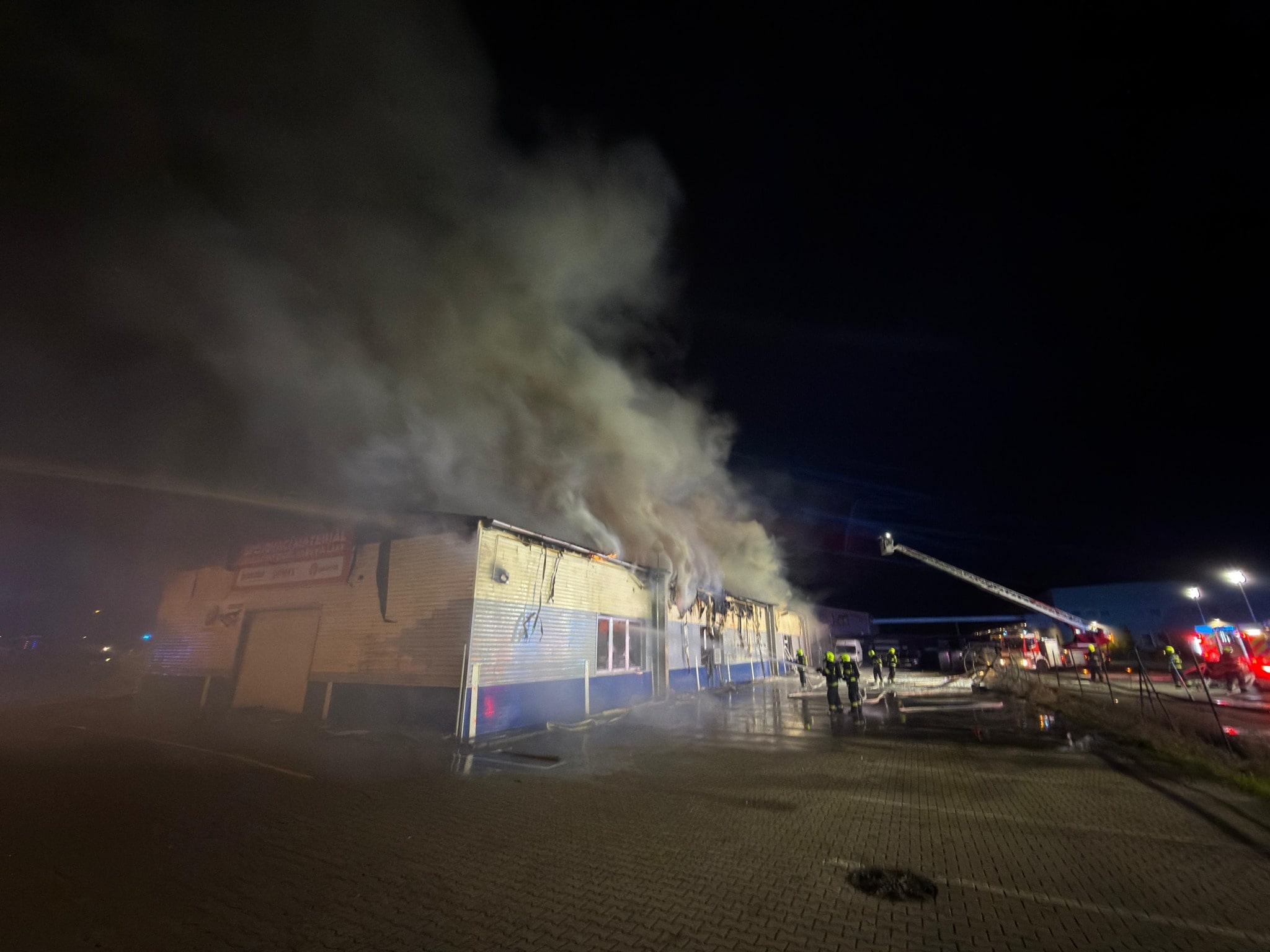 K požáru došlo krátce před osmou hodinou večerní. Oheň zachvátil skladovací halu o rozloze přibližně 50×20 metrů. Kvůli uskladněné pyrotechnice hrozily výbuchy, proto bylo okolí okamžitě uzavřeno. Hasiči zasahovali s devíti vodními proudy, z toho dva využívali z výškové techniky.