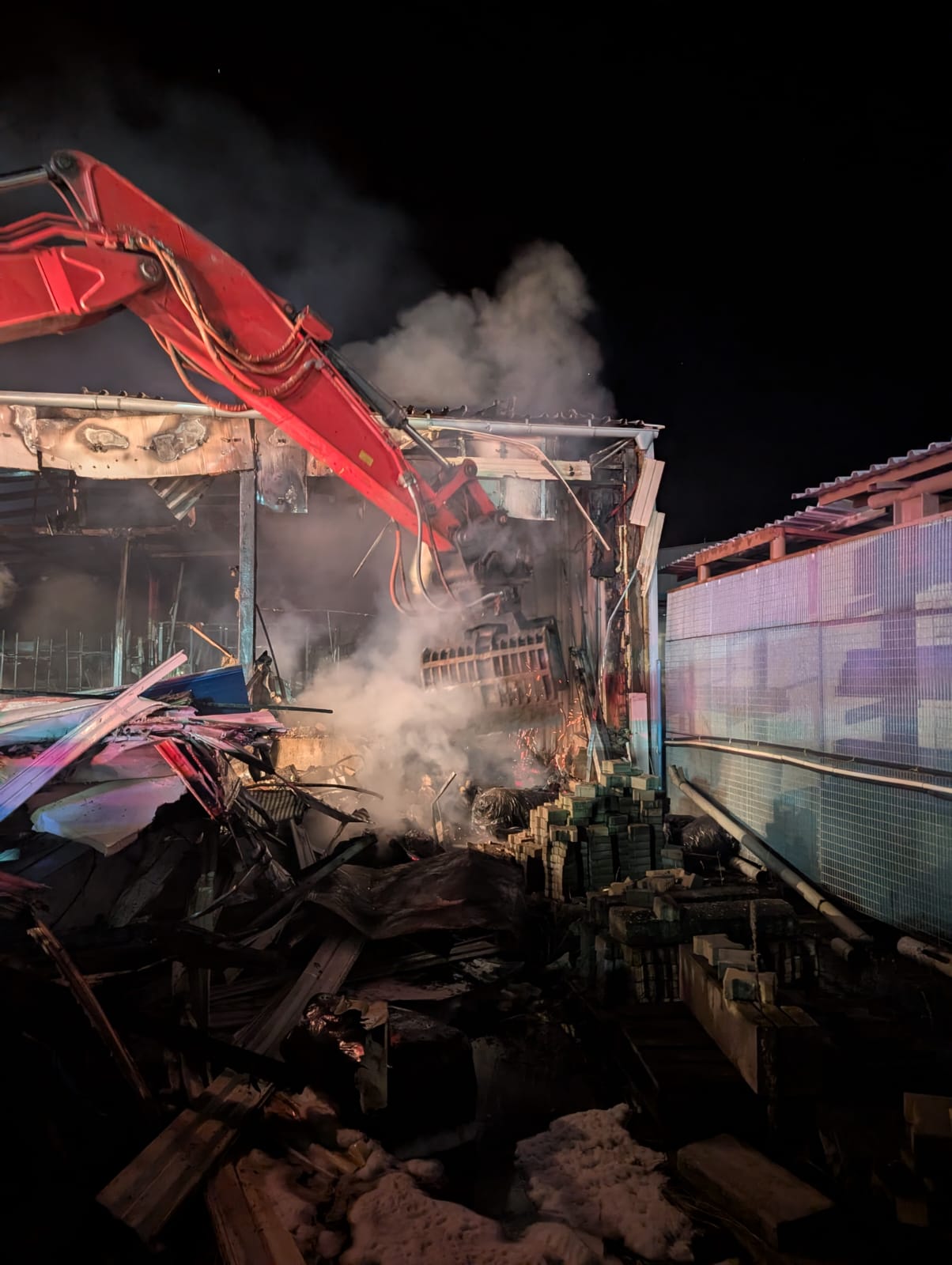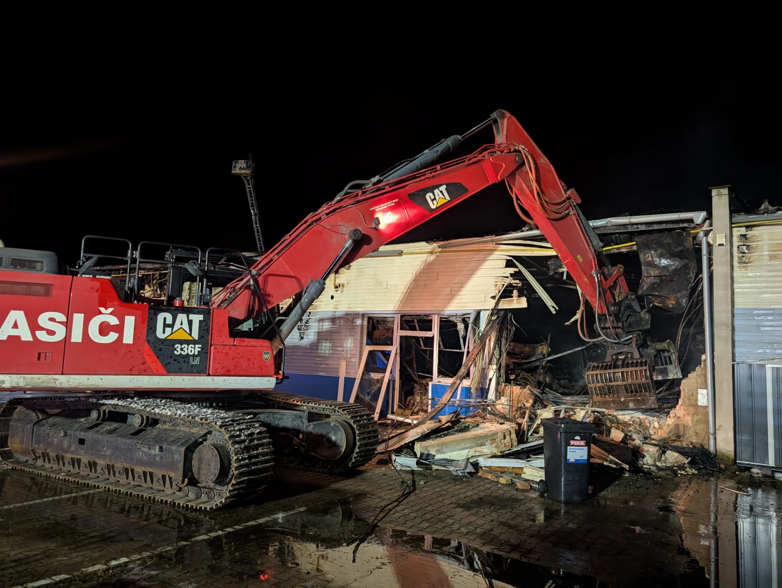 Ve 22:00 se podařilo požár lokalizovat, dohašovací práce však pokračovaly až do noci. Krátce po třetí hodině ráno začali hasiči s rozebíráním konstrukce haly, aby odhalili zbylá skrytá ohniska. Na místo byl přivolán statik, který posoudil stav budovy a rozhodl o dalším postupu.