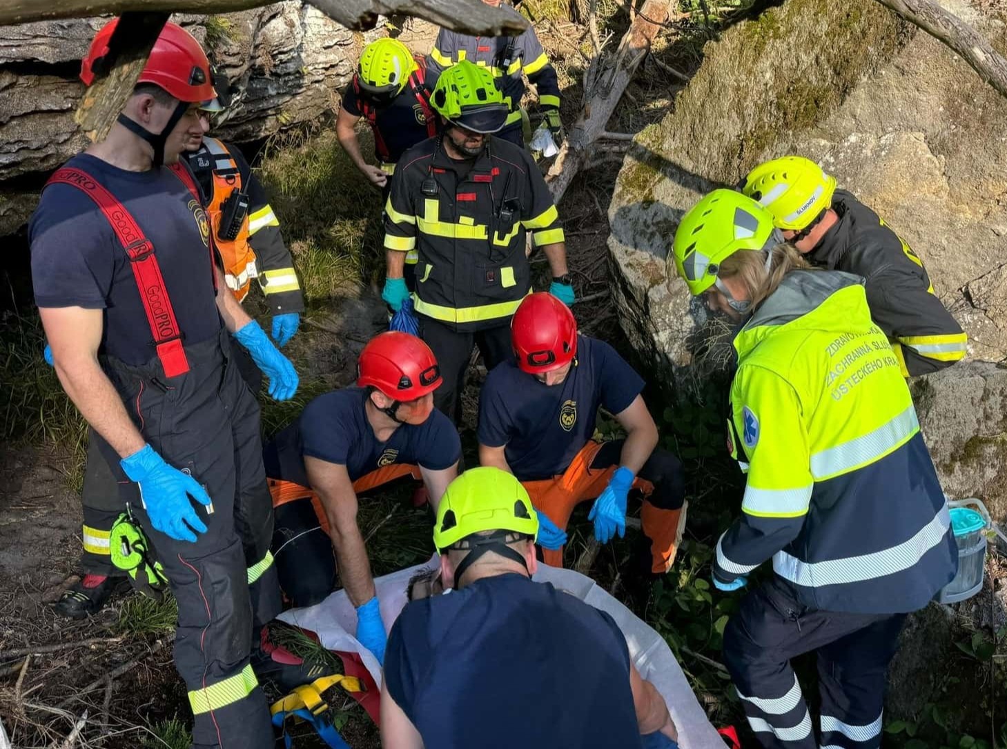 Operační středisko hasičů přijalo oznámení v sobotu v 16:26. Muž spadl zhruba z desetimetrové výšky v lesním terénu u Vlčí Hory, části města Krásná Lípa. Podle hasičů šlo o nepřístupnou oblast, kam se technika nedostane. „Bylo nutné použít lezeckou výstroj a speciální nosítka,“ potvrdil mluvčí Hasičského záchranného sboru Ústeckého kraje.