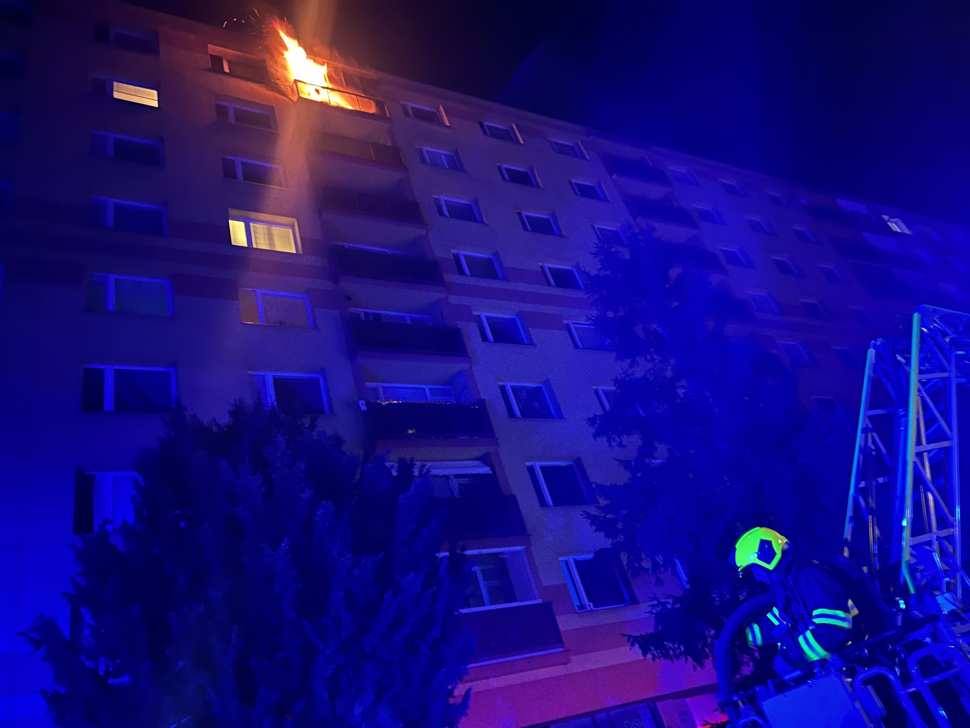 Hasiči v noci zasahovali u požáru bytu v panelovém domě