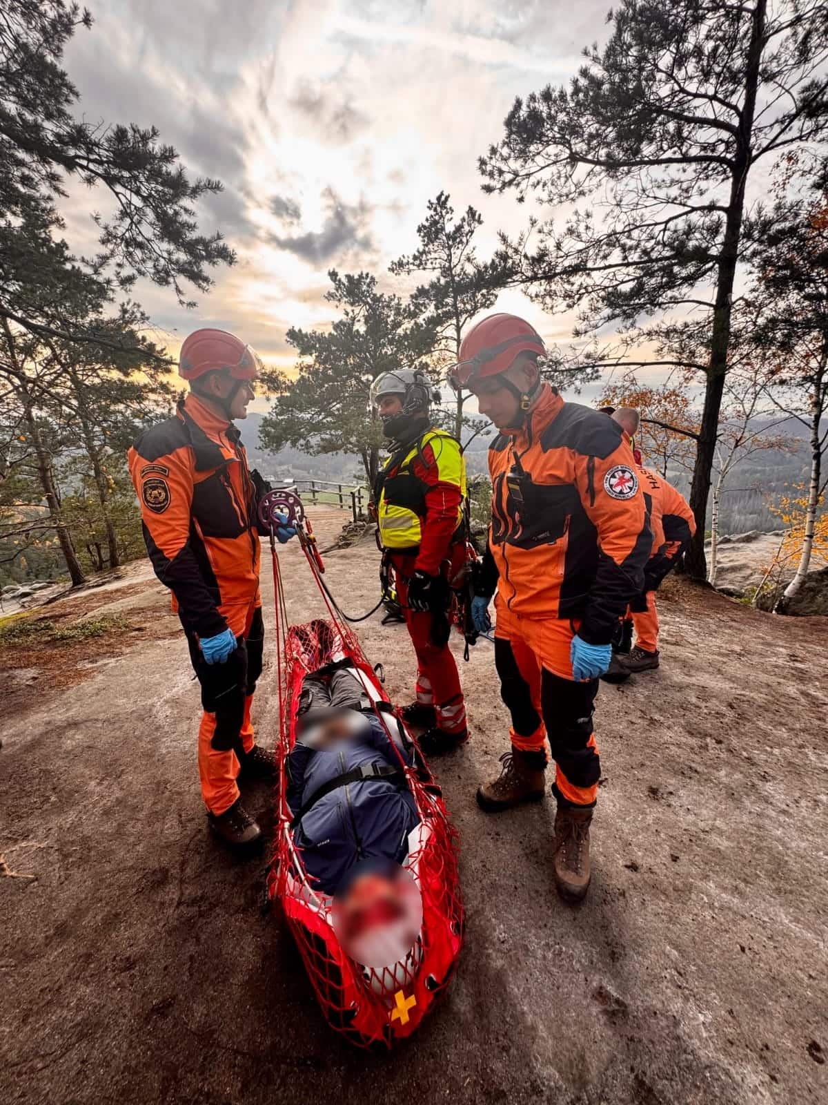 K události došlo v sobotu 1. listopadu krátce před jednou hodinou odpoledne. Tři jednotky hasičů vyjely do skalního města u Jetřichovic, kde se zranil turista po pádu z vyhlídky Vilemínina stěna. Muž zůstal uvězněný v přibližně pětimetrové hloubce mezi skalami a nebyl schopen se sám dostat ven.