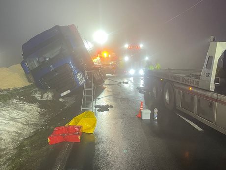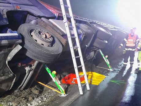Hasiči zasahovali u úniku nafty po dopravní nehodě kamionu