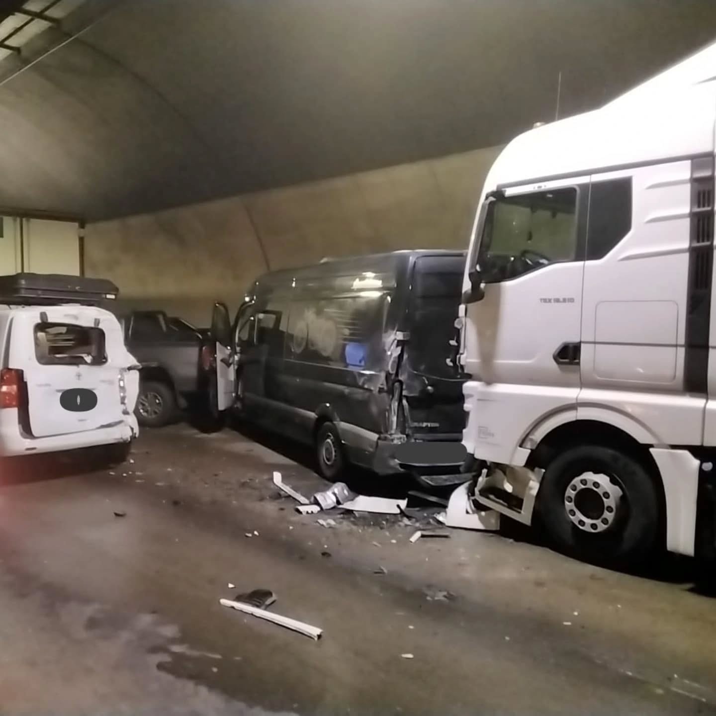 V pátek odpoledne došlo k hromadné dopravní nehodě tří osobních a tří nákladních vozidel v tunelu na dálnici. Hasiči zasahovali při vyprošťování vozidel, zajištění místa a spolupráci se záchranáři. Provoz v tunelu byl na několik hodin zastaven, vznikaly dlouhé kolony.