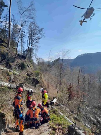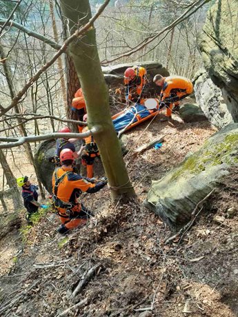 Další zásah následoval krátce poté, kdy hasiči vyjížděli k pádu horolezce. Zraněného ošetřili a v nosítkách ho transportovali z náročného terénu na místo, kde si ho převzala letecká záchranná služba. Odpoledne pokračovalo dalším výjezdem, tentokrát k turistce, která se zranila na hoře Říp. I zde byla nutná spolupráce se zdravotnickou záchrannou službou a následný transport v nosítkách.