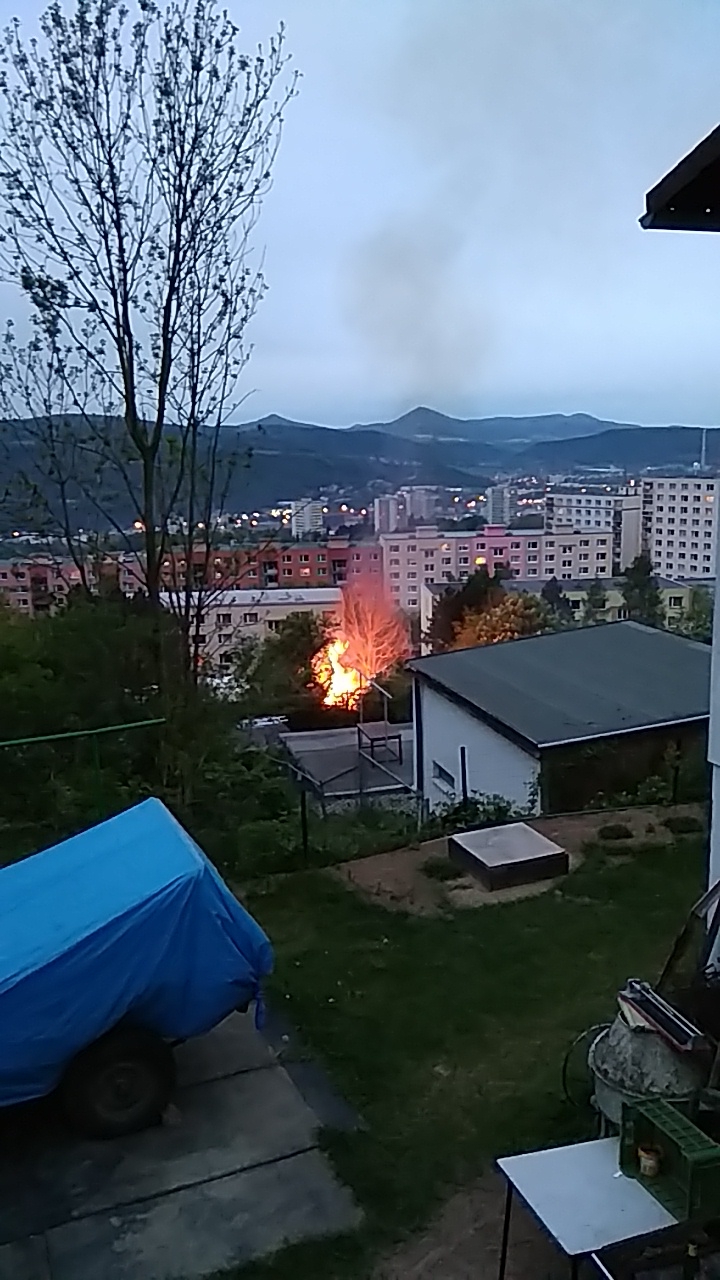 Přikládám ale foto z 19 hodin 30. 4. z Ústí nad Labem – Severní Terasy, které mi poslala sousedka. Takovýto oheň opravdu nebylo moudré rozdělávat.
