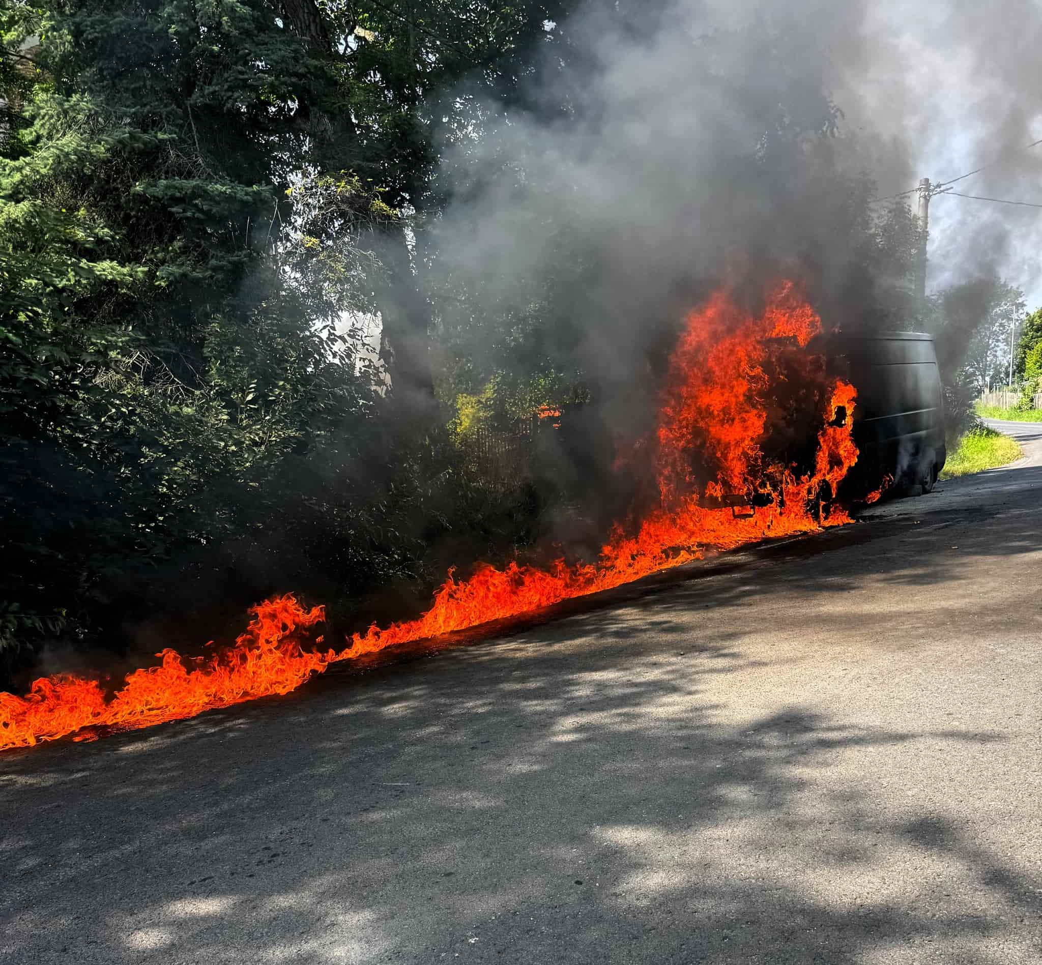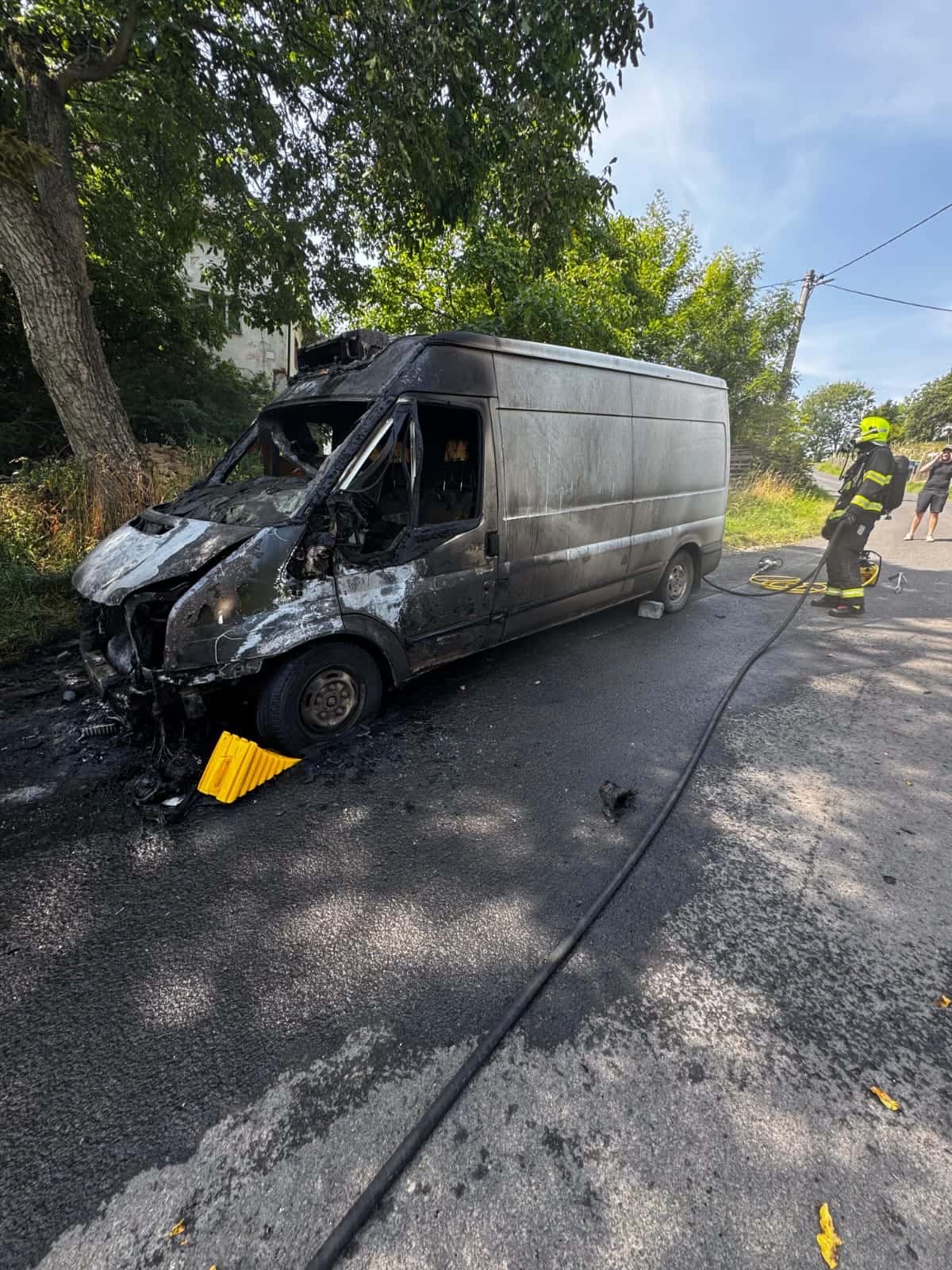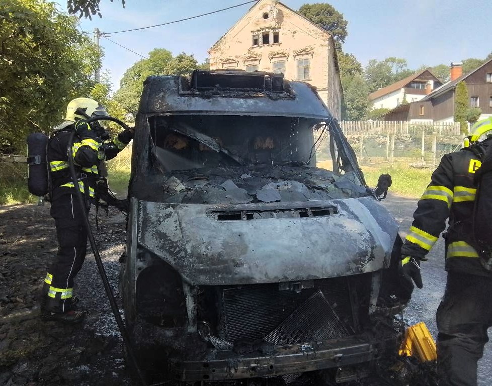 Plameny pohltily dodávku na Děčínsku, Hasiči zabránili dalším škodám