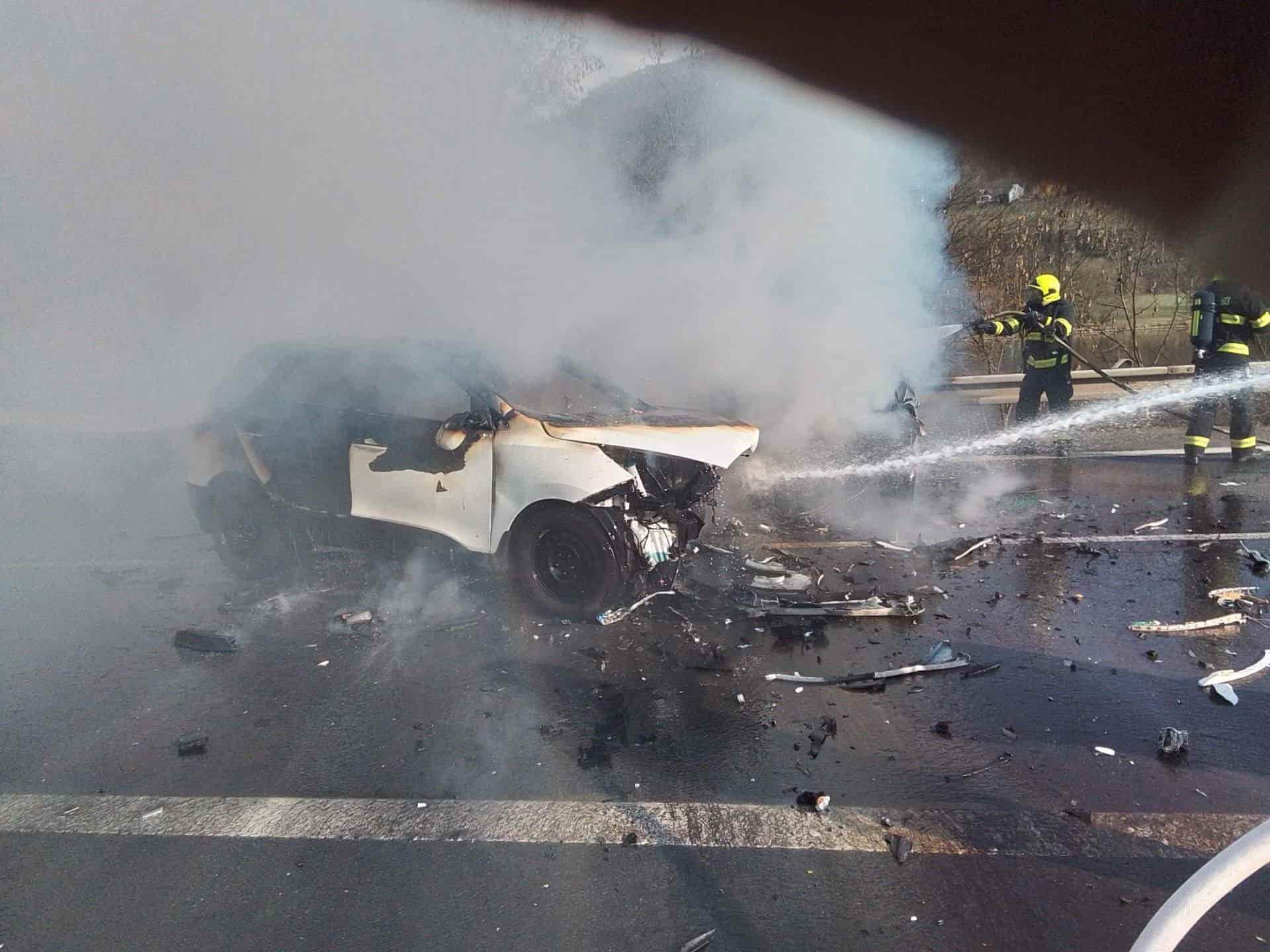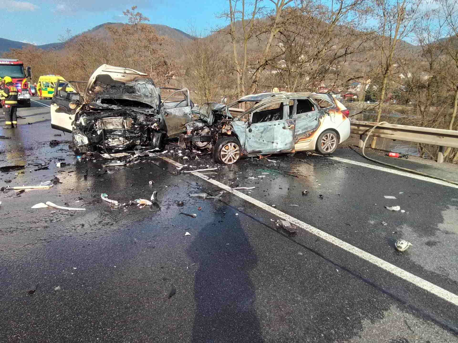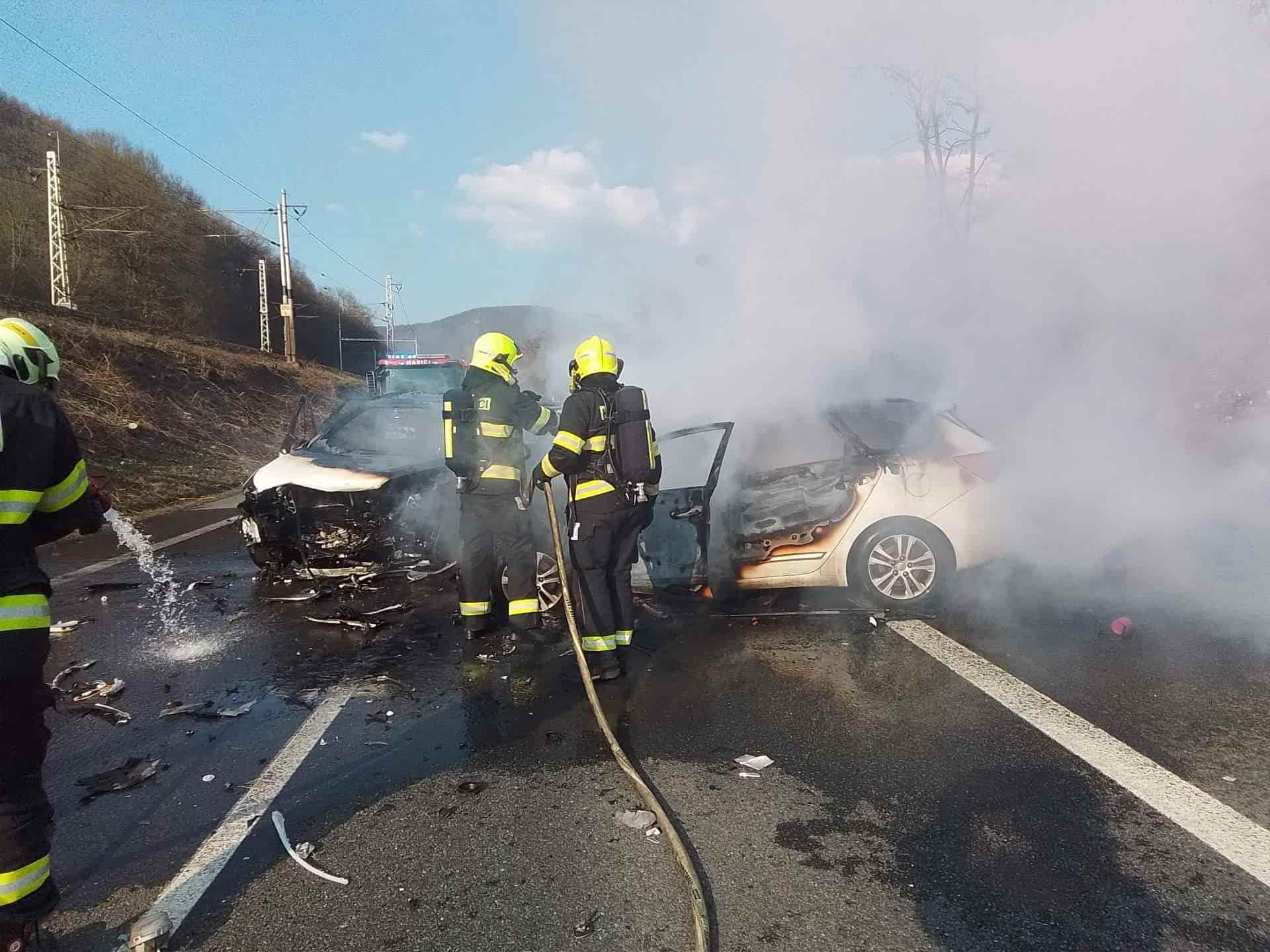 Po nehodě vzplála vozidla a zranila posádky