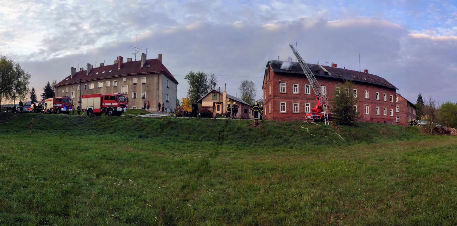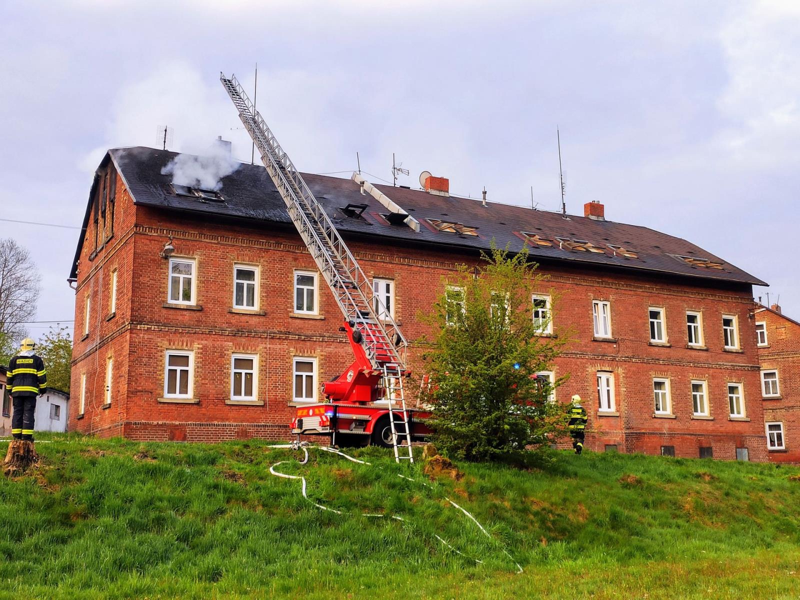 Sedm hasičských jednotek vyjelo v 4:32 k požáru bytovky v Chřibské - Krásném Poli. Hořel prázdný byt v posledním patře a střecha...