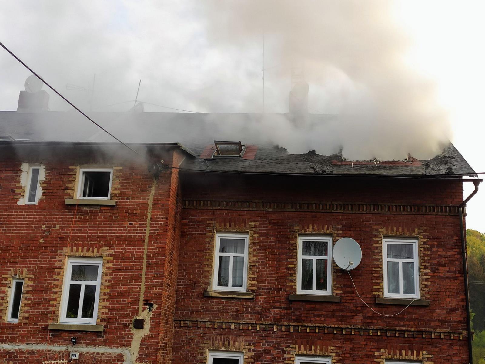Požár bytovky v Chřibské - Krásném poli
