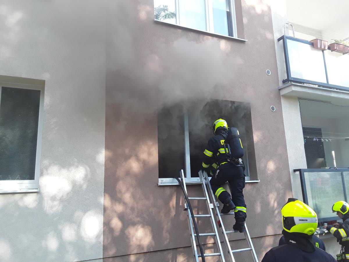 Z bytu hasiči vynesli živou kočku.