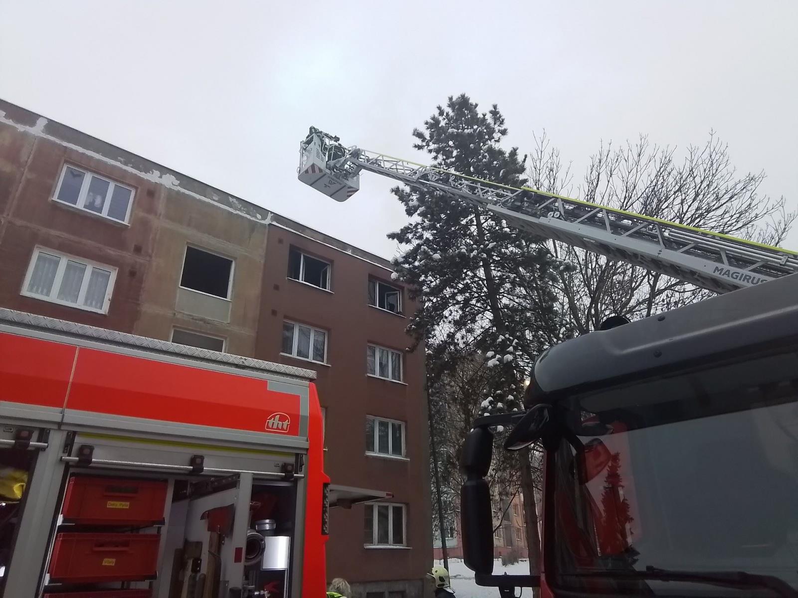 Požár bytu vyžádal evakuaci patnácti osob a ošetření tří zraněných