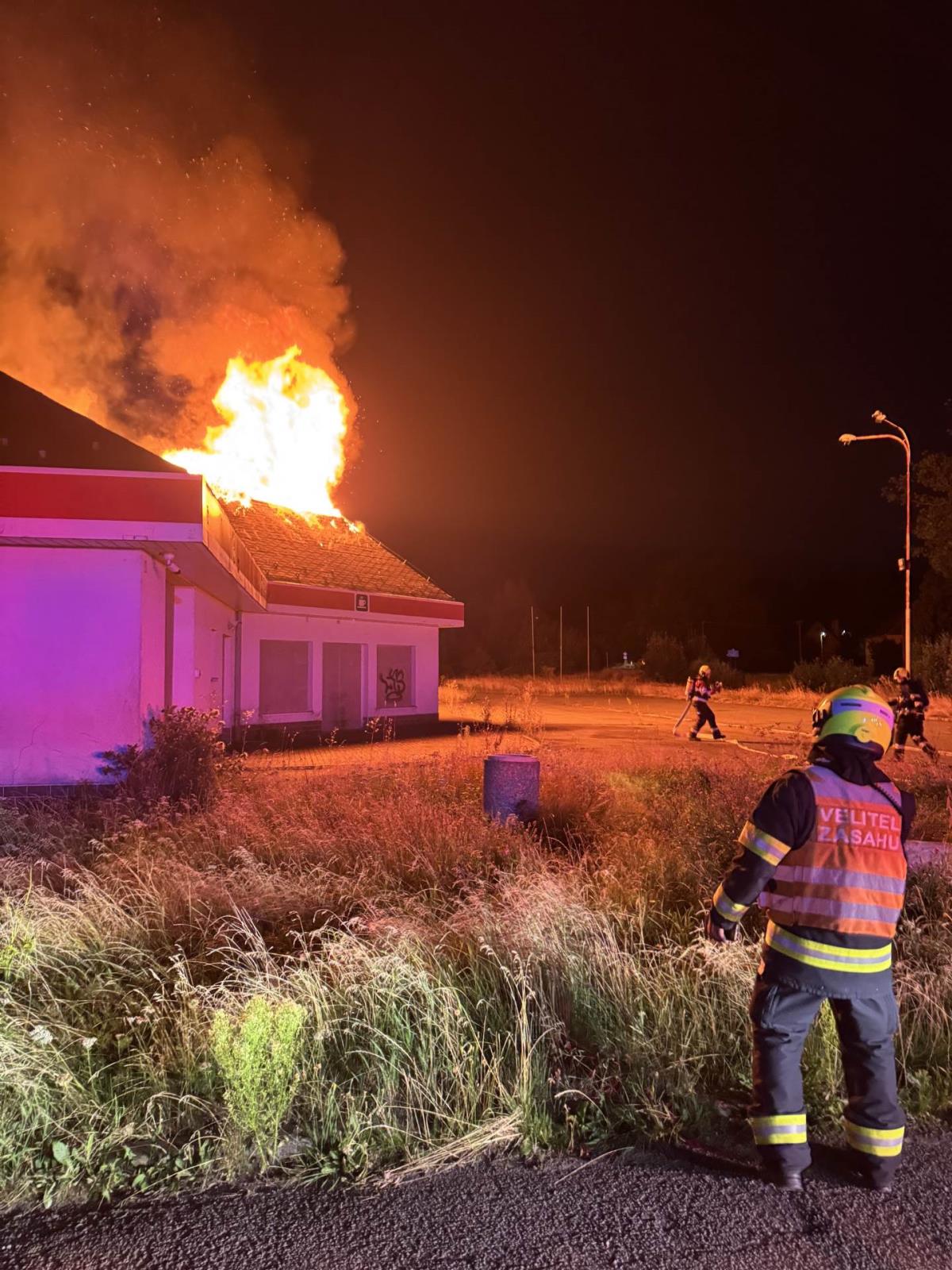 V neděli večer zasahovali hasiči u požáru střechy bývalé čerpací stanice ve Studánce u Varnsdorfu. Plameny zasáhly většinu konstrukce a na jejich likvidaci musela být použita výšková technika i několik útočných proudů.