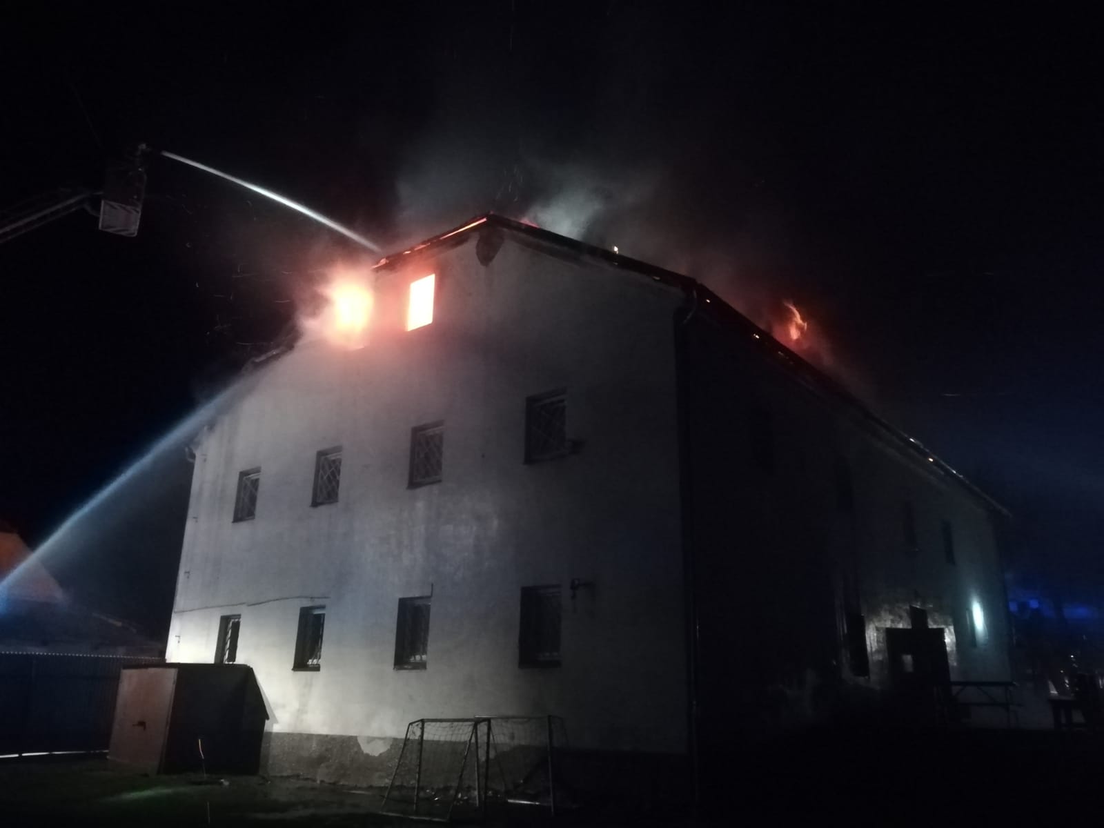 Hořela střecha a půda bývalé fary. Hasiči zasahovali zevnitř budovy a z výškové techniky. Střecha hořela pod plechovou krytinou, bylo nutné ji rozebrat.