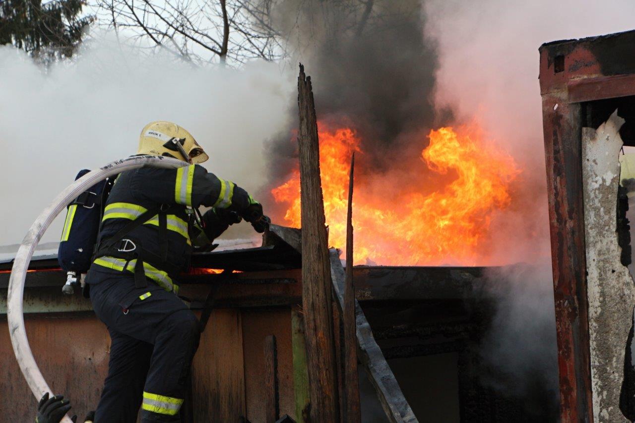 Hořela zahradní chatka. Při požáru byl jeden člověk zraněn. Odvezla jej Zdravotnická záchranná služba.