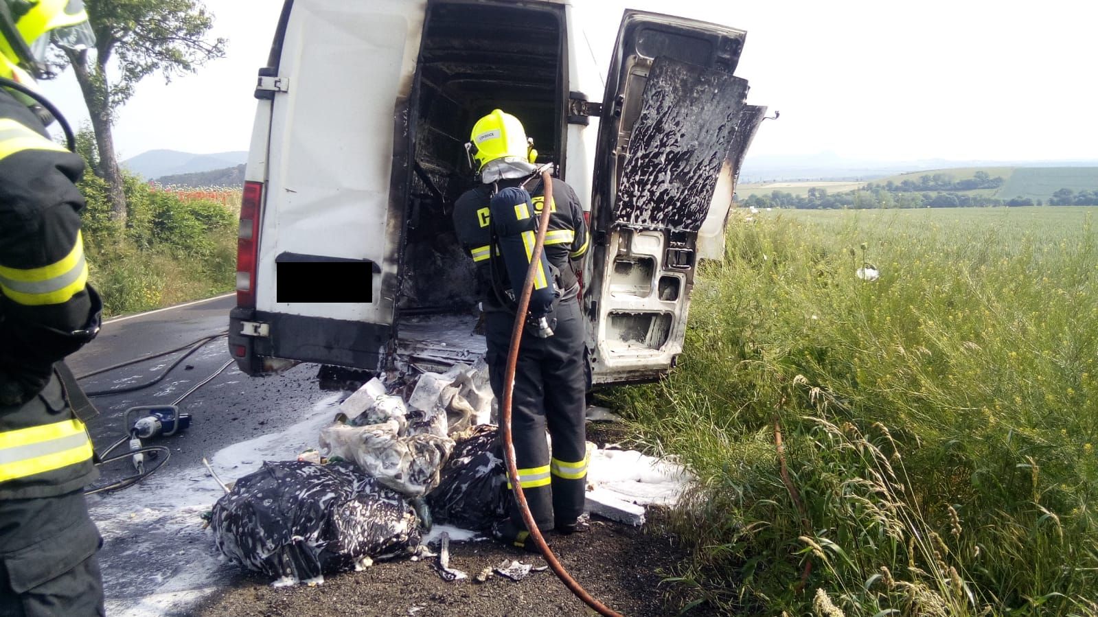 16. 6. 2021 8:46 Jednotka ze stanice Lovosice a dobrovolná jednotka z Libčevsi zlikvidovaly požár dodávky u Děčan, okres Litoměřice. Požár zasáhl motor, kabinu i část nákladového prostoru. Ten museli hasiči otevřít hydraulickým rozpínákem. K hašení použili dva vysokotlaké vodní proudy.