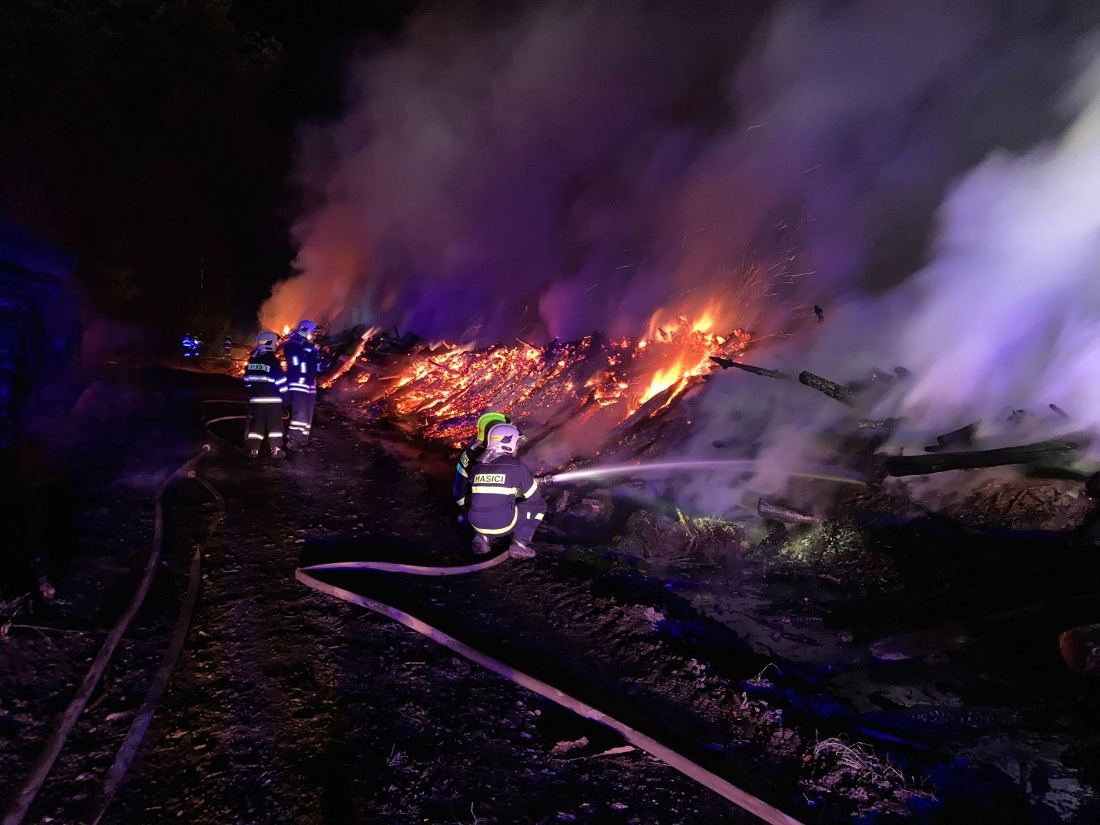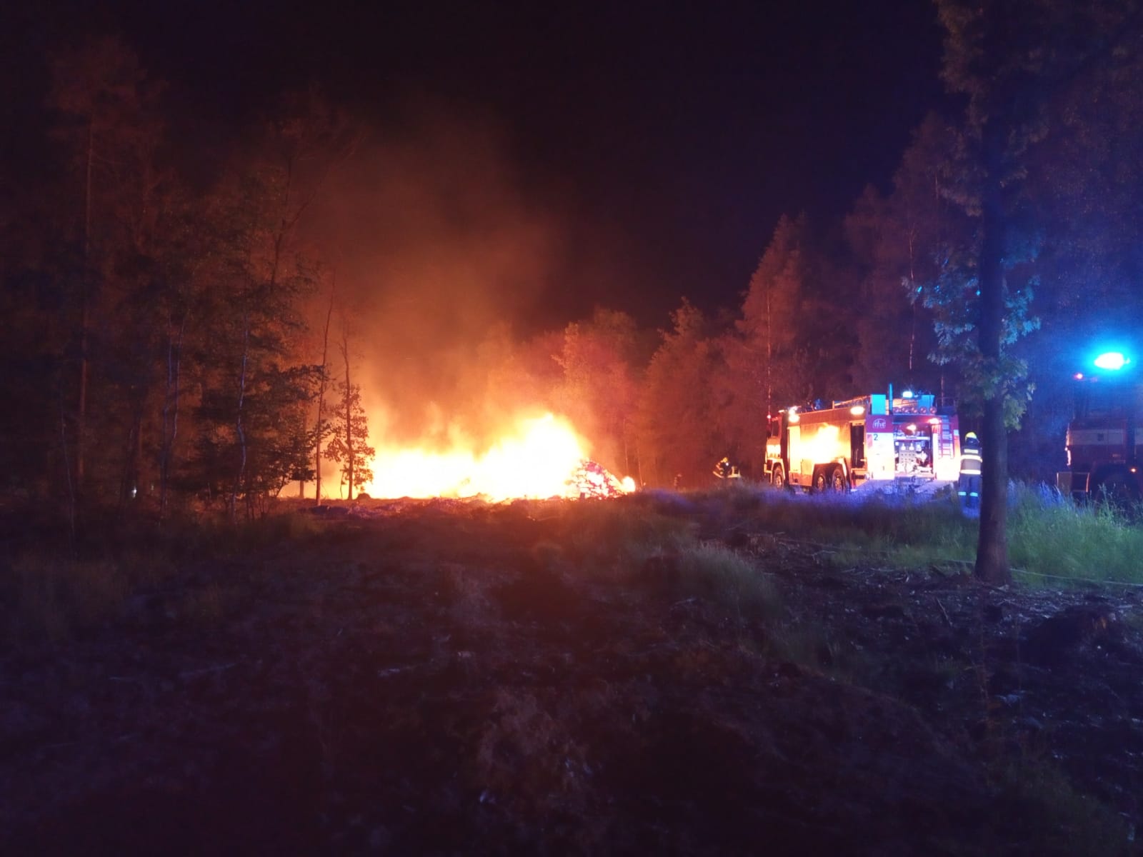 8. 6. 2021 Devět hasičských jednotek vyjelo v 21:47 k požáru hromady dřeva na ploše 100x3m v lese u obce Třebívlice - Leská, okres...