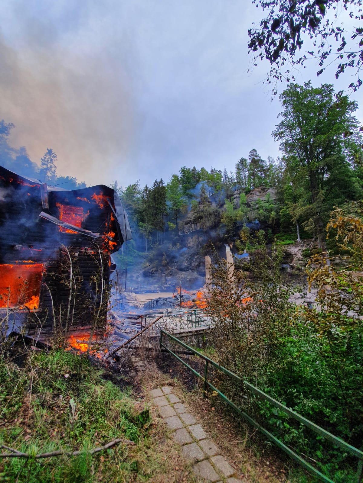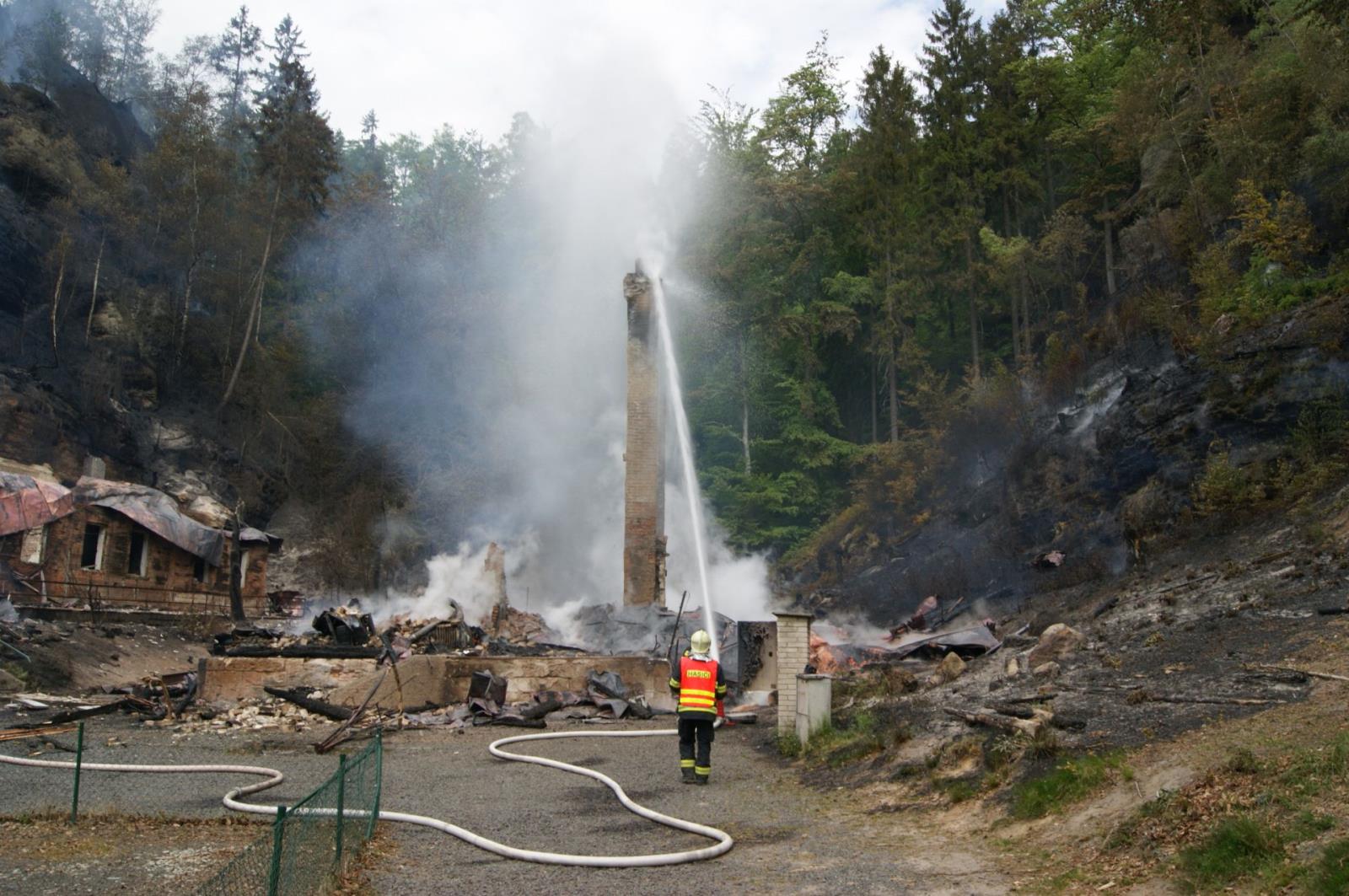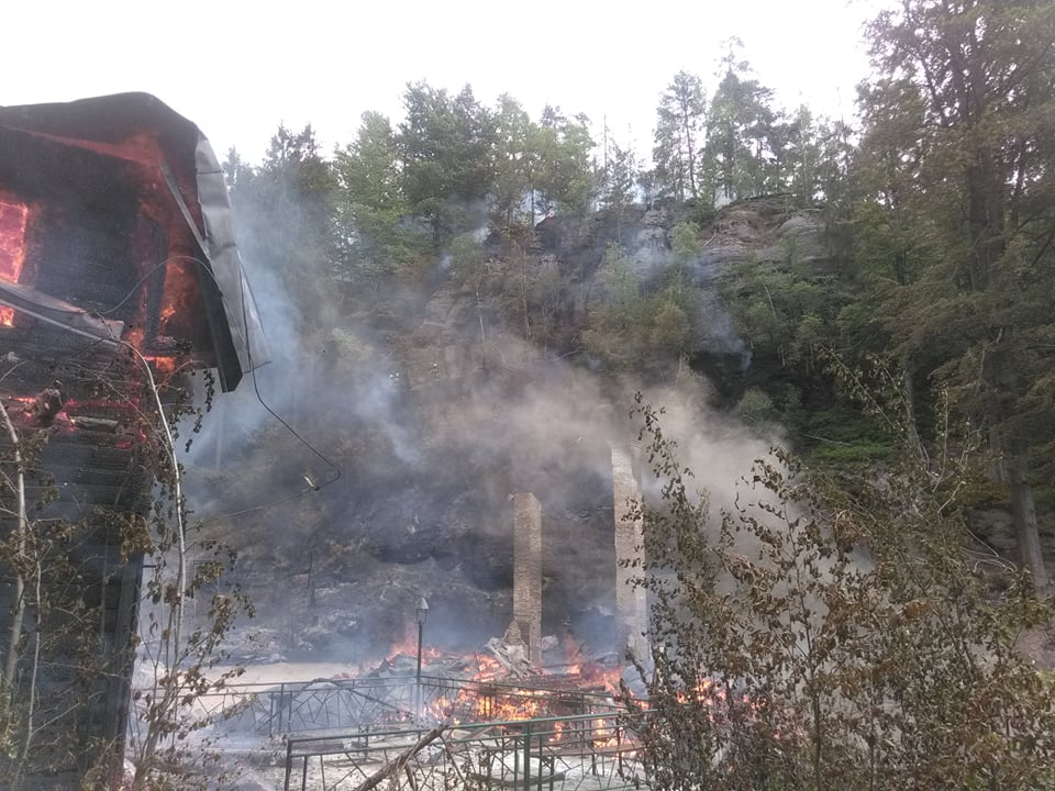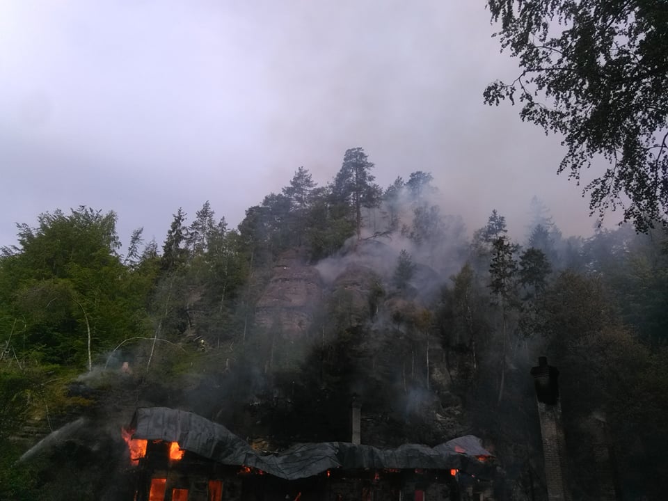 Požár penzionu s restaurací Na Tokání, přilehlé ubytovny a lesního porostu na ploše zhruba 1,5 až 2ha u Rynartic, okres Děčín byl lokalizován v 13:46. Probíhají dohašovací práce.