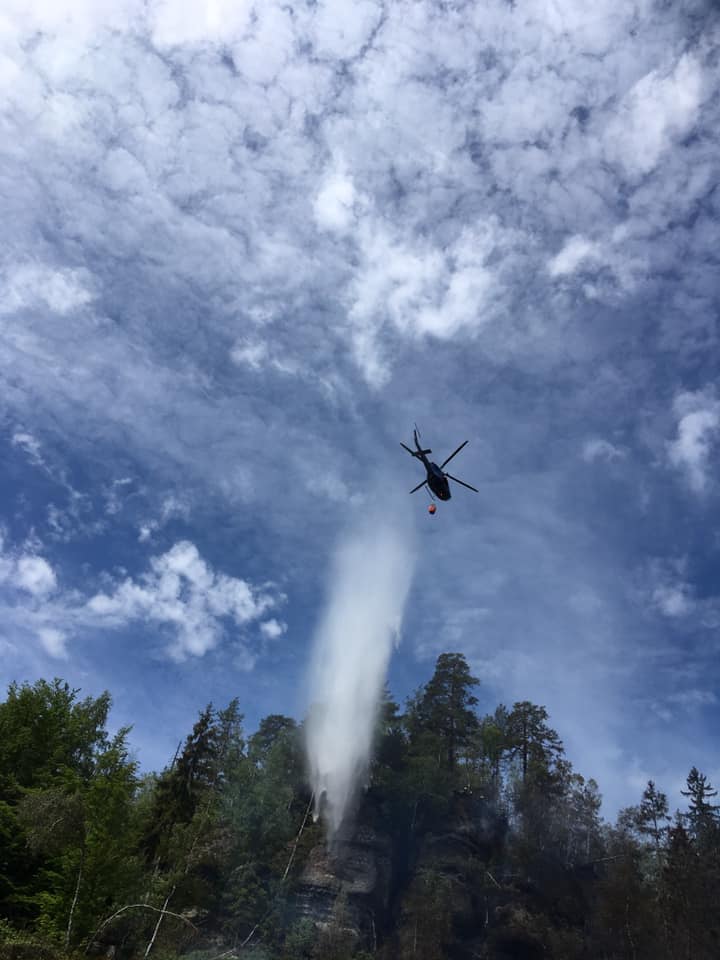22. 5. 2020 6:49 Šestnáct hasičských jednotek vyjelo k požáru dvou chat a lesního porostu v Rynarticích - Na Tokání, okres Děčín. Byl vyhlášen třetí stupeň poplachu. Na místo byl povolán vrtulník s hasicím vakem.