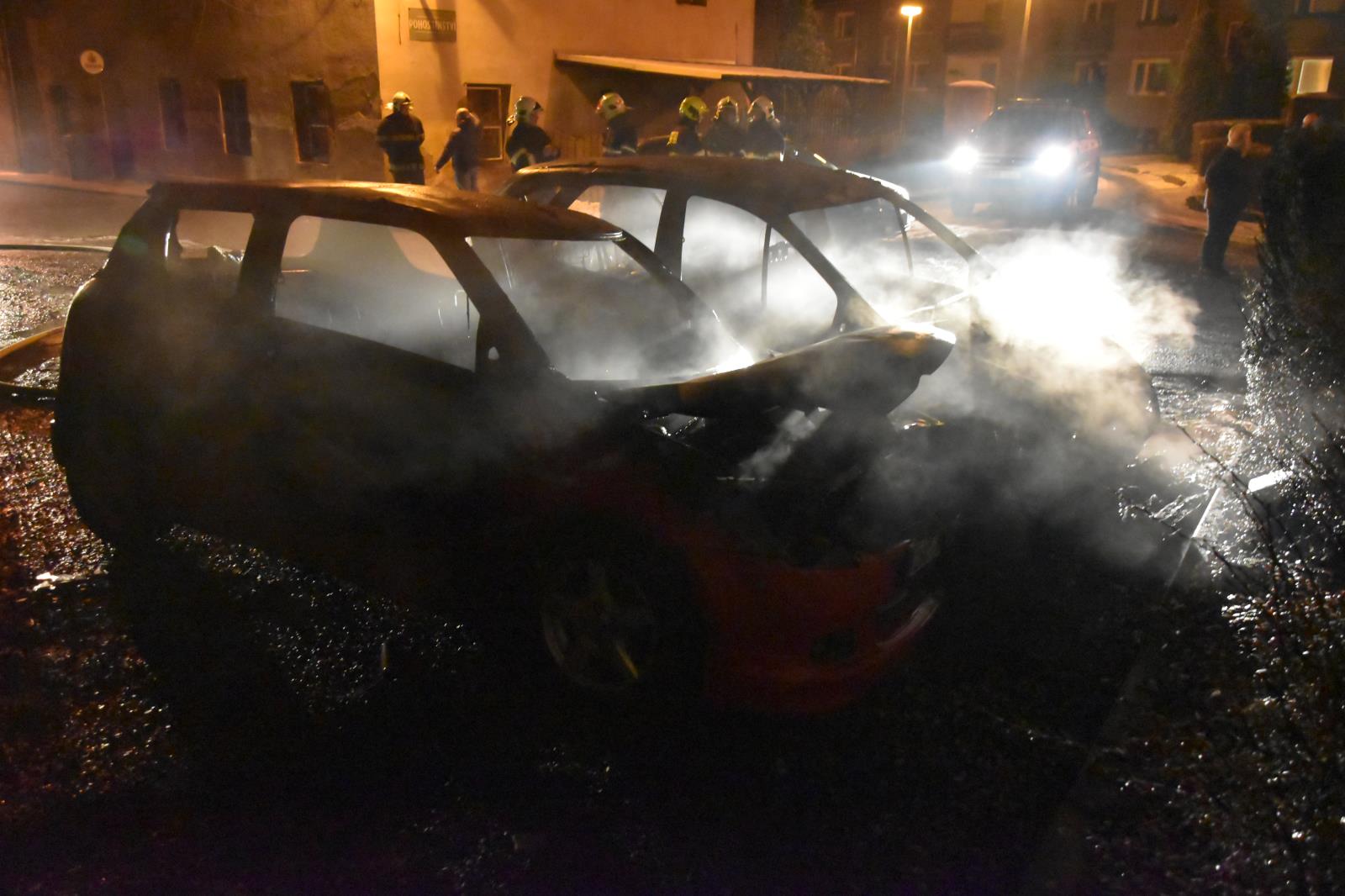 Požár dvou osobních automobilů