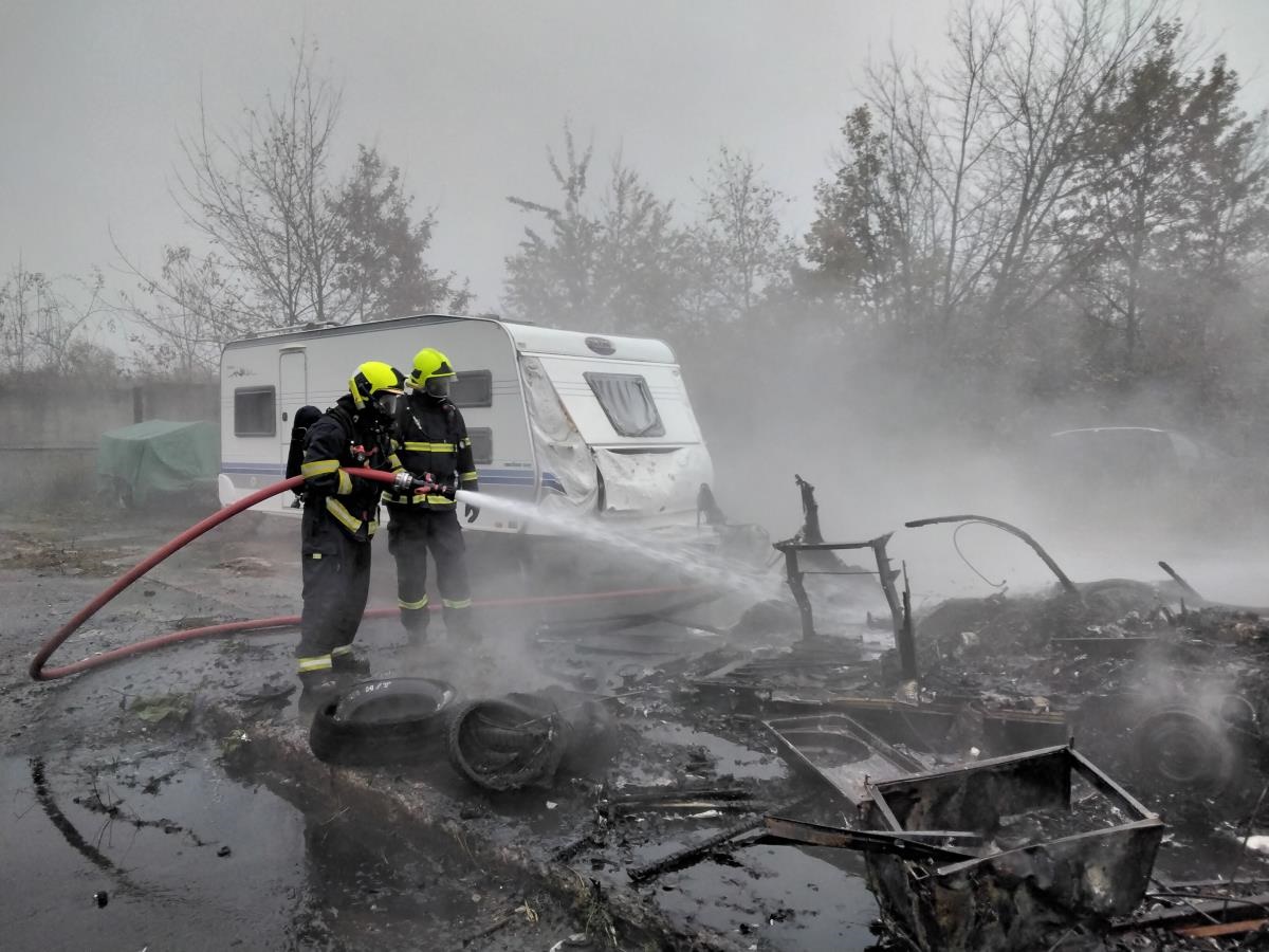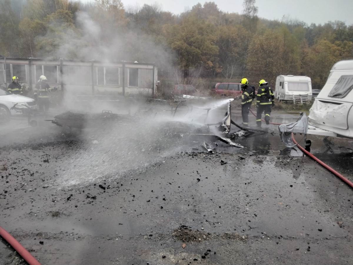 Požár karavanu v Chlumci