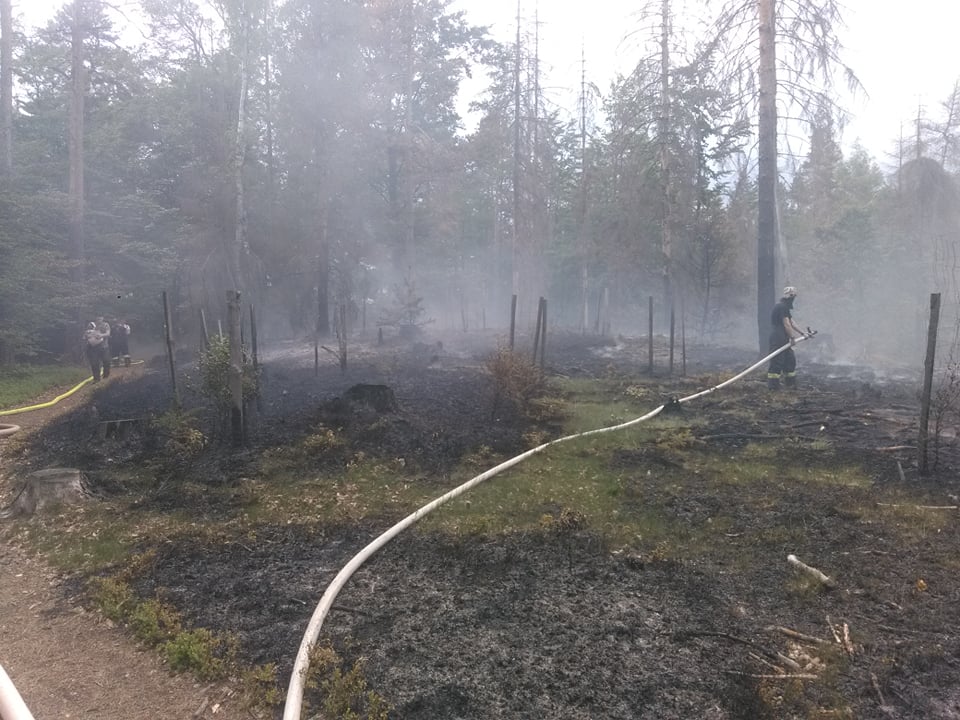20. 5. Dnes ráno najely do prostoru požářiště jednotky, které po včerejší lokalizaci požáru (20:42 viz zpráva HZS ÚK na twitteru) prolévají lokální místa, kde se ještě kouří.