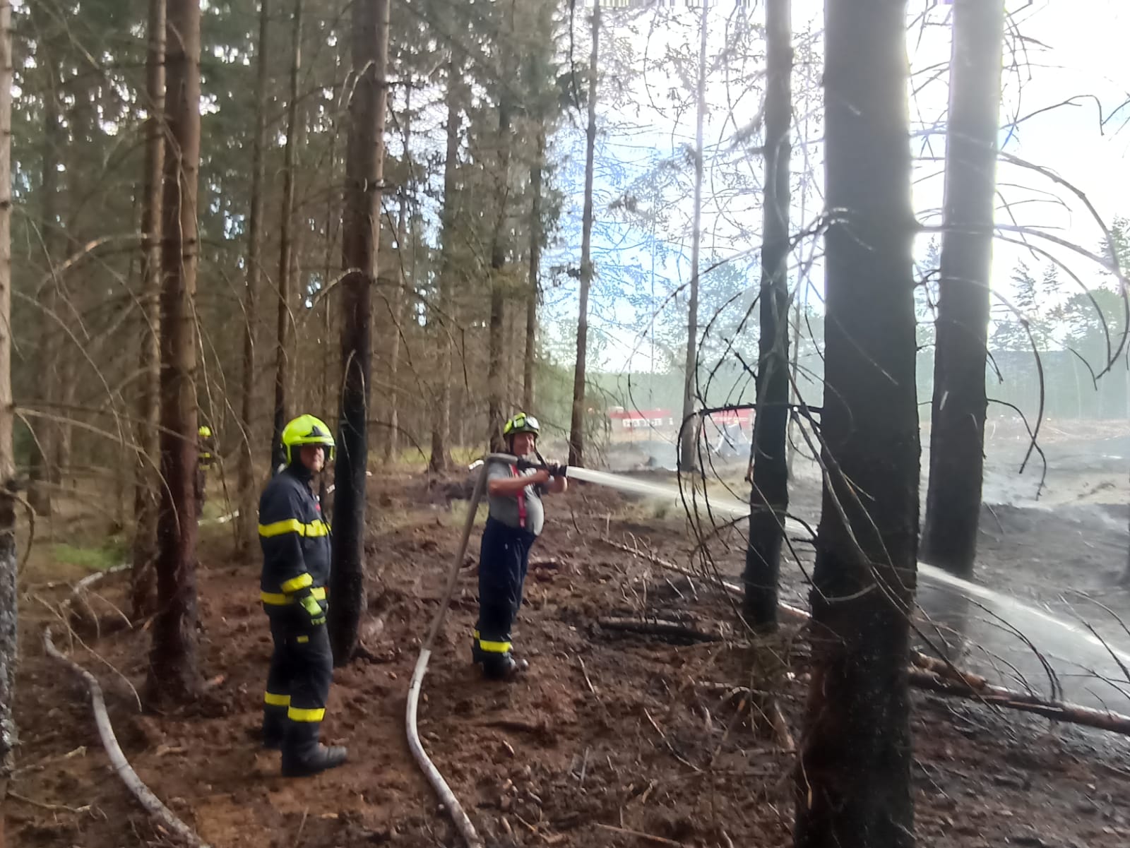27. 6. 2022 14:53 Sedm jednotek hasičů vyjelo k požáru lesního porostu v Děčíně - Bynově u Kristinina Hrádku. Hořelo na ploše 100x100m na české straně a 50x50m na německé straně. Němečtí hasiči zasahovali částečně i na české straně. Požár je lokalizovaný. Místo je proměřováno termokamerou. Zlikvidován v 18:04.