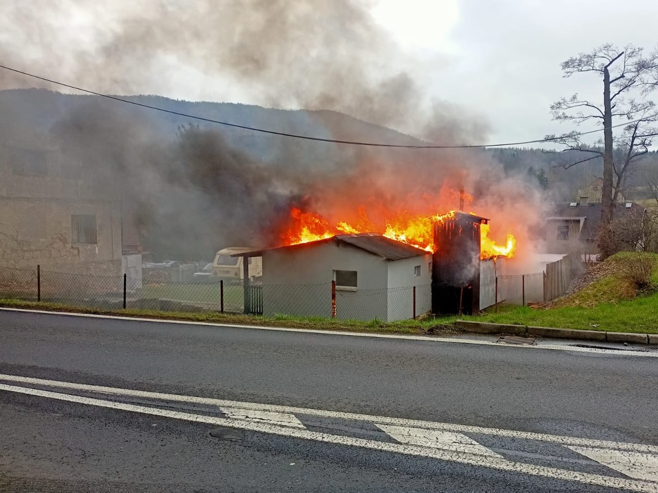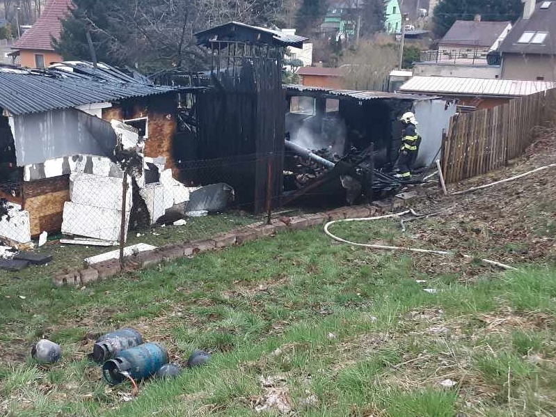 5. 4. 2022 v 18:07 hodin. Hasiči ze stanice Děčín a dobrovolní hasiči obcí Jílové a Libouchec likvidovali požár nízké budovy - mobilheimu v obci Jílové - Modrá na Děčínsku. V době příjezdu hasičů byl objekt o rozměrech 11 x 3 m zcela zasažen plameny. Hasiči požár likvidovali pomocí tří útočných vodních proudů "C", rozebírali  část budovy a vynesli dvě propanbutanové láhve (10 a 2 kg), které na volném prostranství ochladili vodou. Požár se hasičům podařilo lokalizovat v 18:45 hodin a  likvidovat v 19:48 hodin. Požár vznikl po technické závadě na elektroinstalaci bojleru