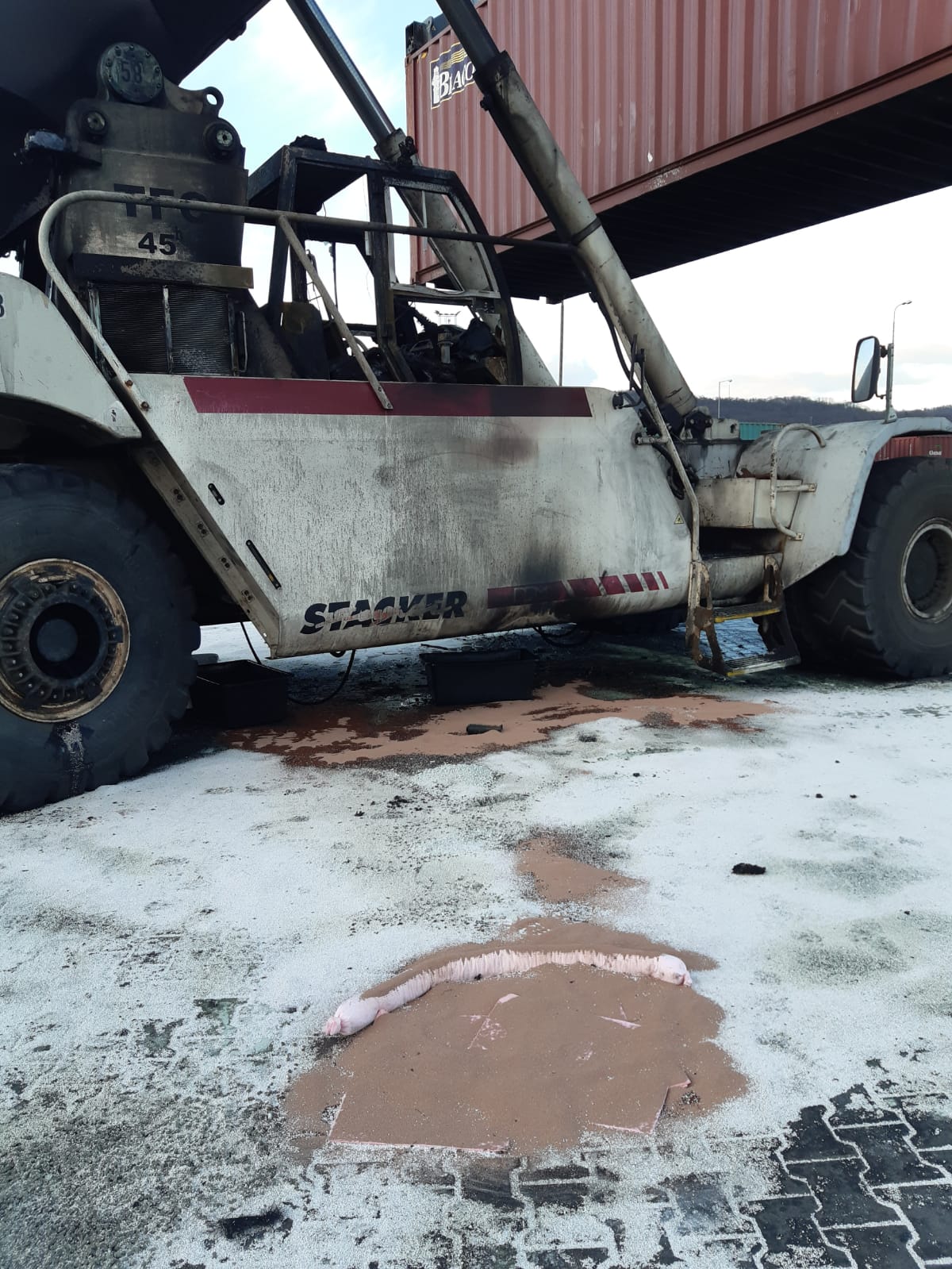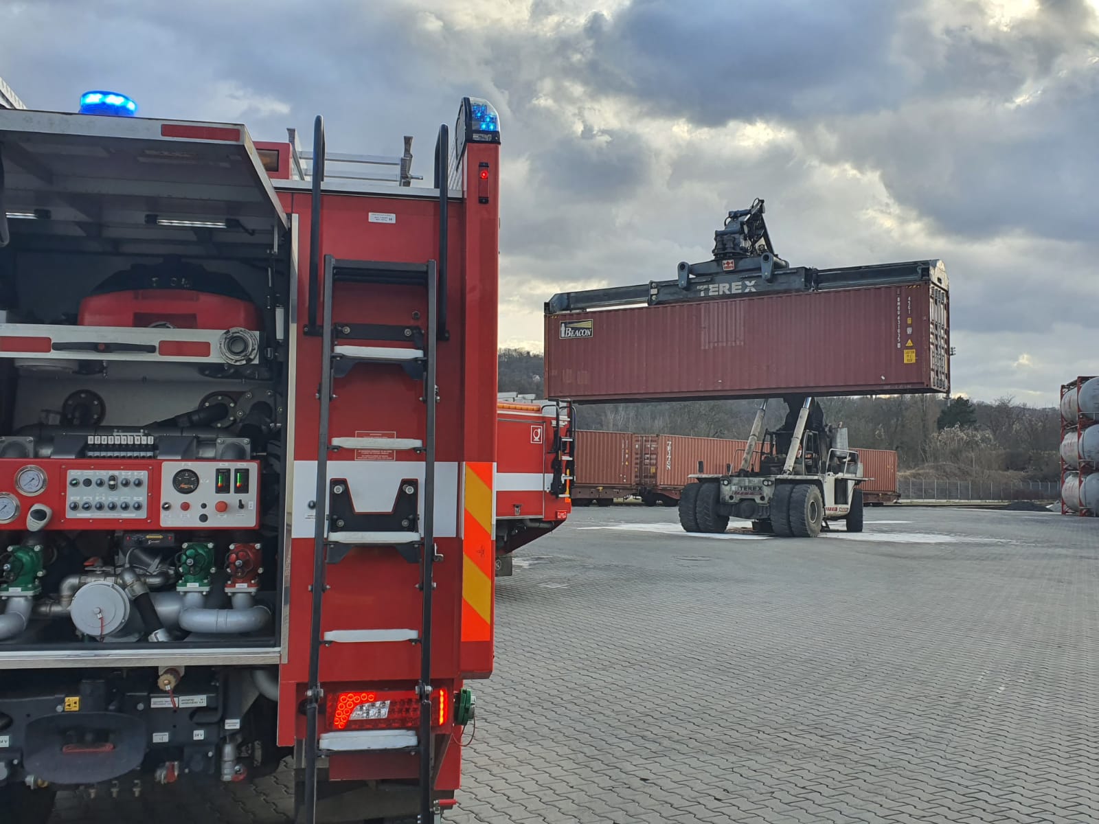 Při hašení nakladače kontejnerů došlo k úniku nečistot do řeky Labe