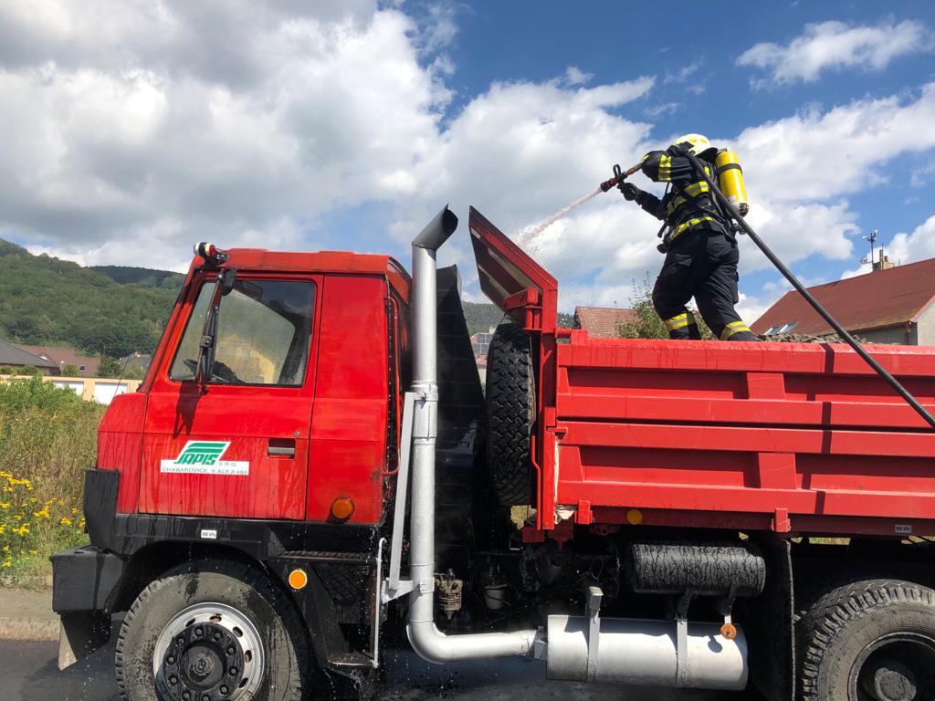 25. 8. 2020 11:57 Jednotka ze stanice Teplice a dobrovolná jednotka z Krupky zlikvidovaly požár nákladního auta v Krupce - Maršově...