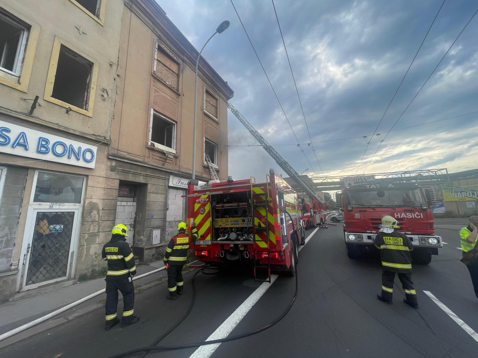 V pátek večer zasahovaly čtyři hasičské jednotky u požáru opuštěné budovy. Kvůli nestabilní konstrukci probíhalo hašení převážně zvenčí, aby se předešlo riziku zranění.