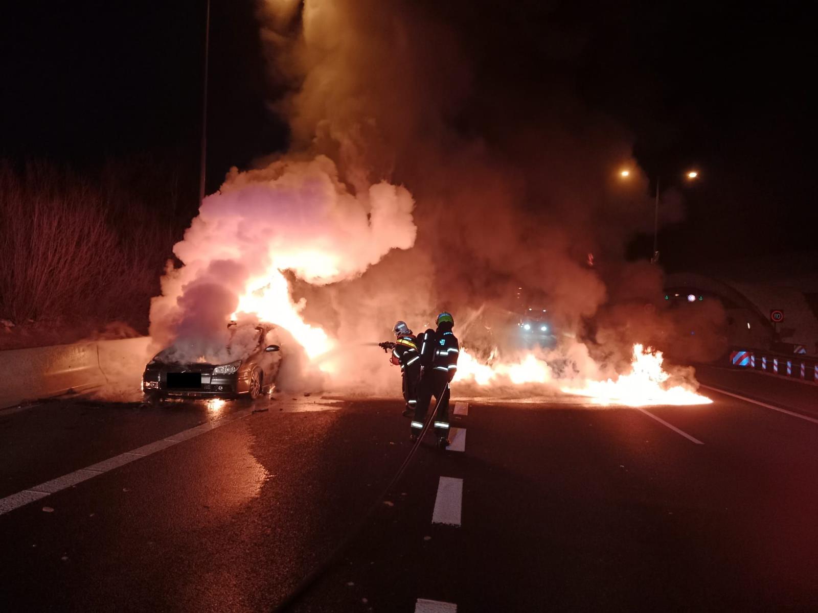 28. 2. 2022 Jednotka ze stanice Petrovice vyjela v 5:59 k požáru osobního auta u ústí tunelu na D8 u Petrovic...