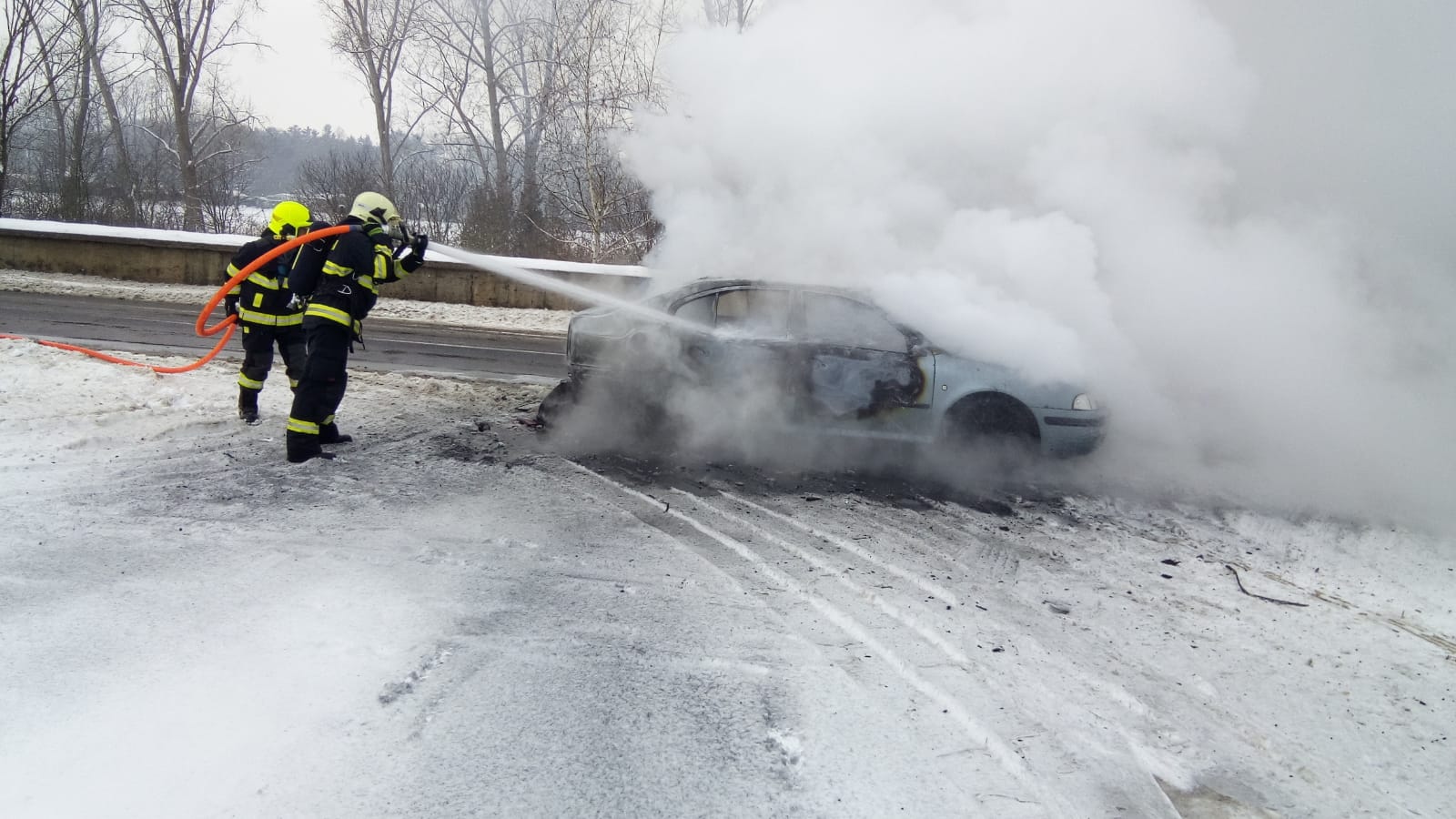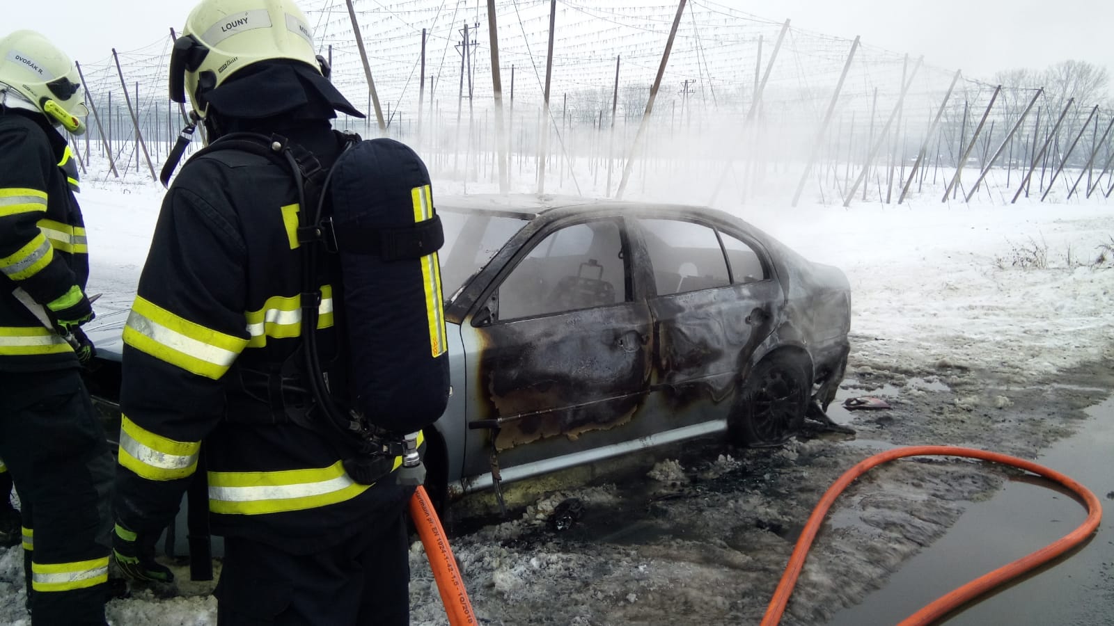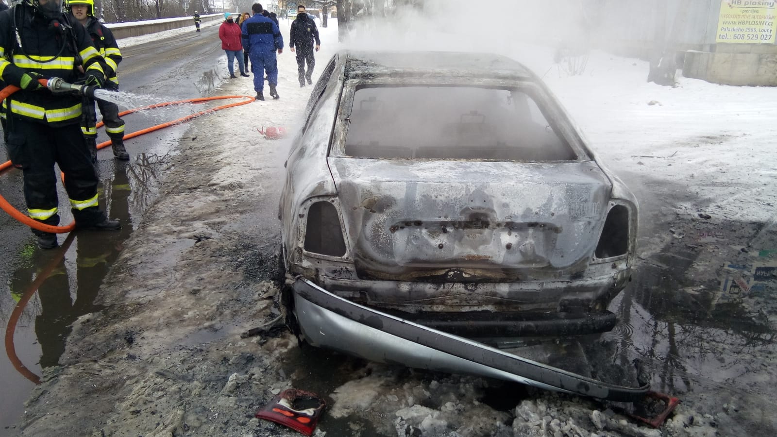 Jednotka ze stanice Louny a dobrovolné jednotky z Dobroměřic a Cítolib vyjely k požáru osobního auta u Loun. Posádka vozu stačila vystoupit. Použit byl hasicí přístroj. Hasiči zasahovali vodním proudem. Vůz po likvidaci požáru zkontrolovali termokamerou. Jeden pruh vozovky byl uzavřen. Doprava byla řízena kyvadlově.