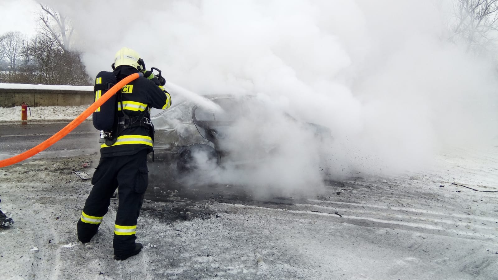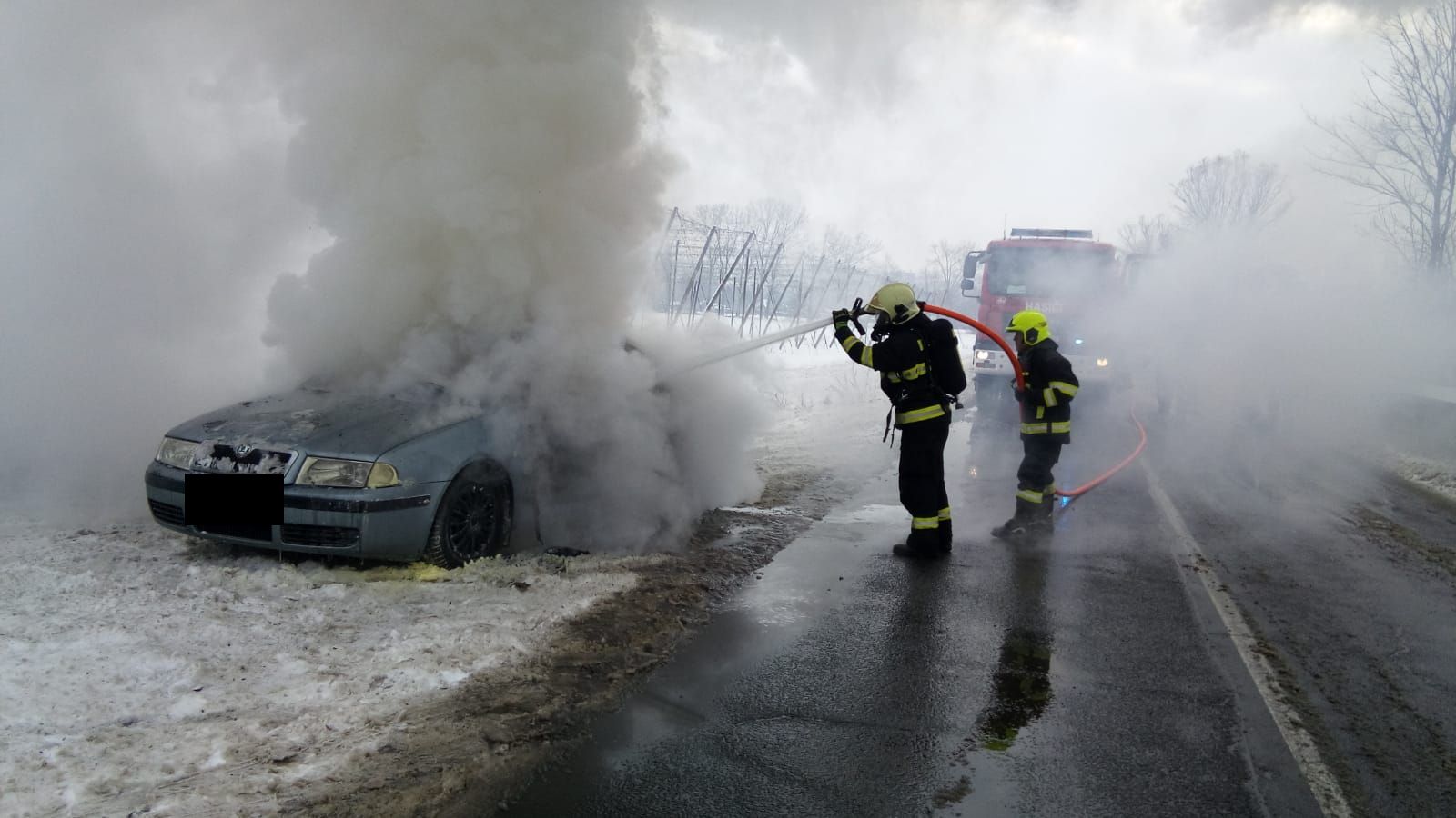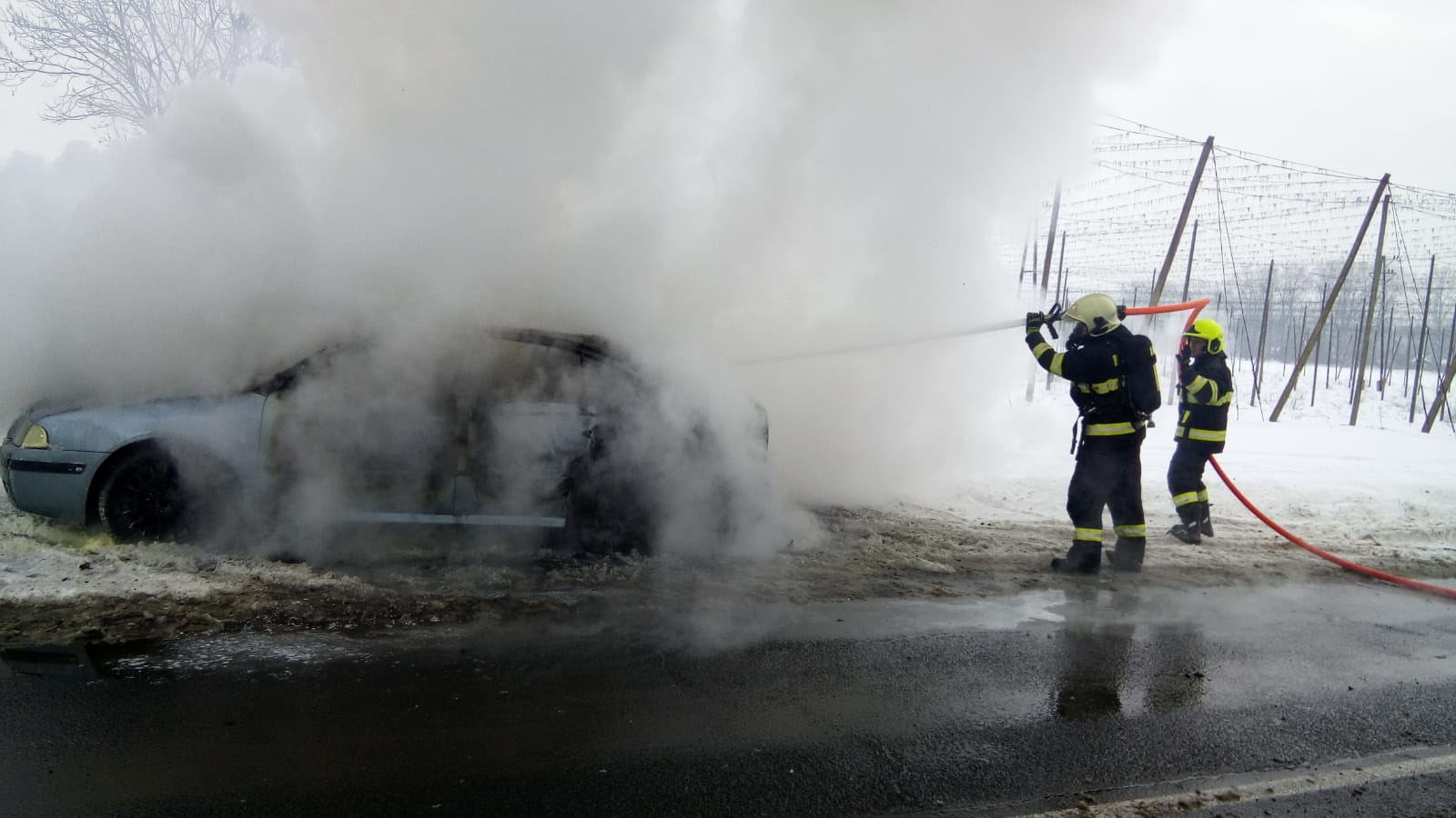 Jednotka ze stanice Louny a dobrovolné jednotky z Dobroměřic a Cítolib vyjely k požáru osobního auta u Loun. Posádka vozu stačila vystoupit. Použit byl hasicí přístroj. Hasiči zasahovali vodním proudem. Vůz po likvidaci požáru zkontrolovali termokamerou. Jeden pruh vozovky byl uzavřen. Doprava byla řízena kyvadlově.