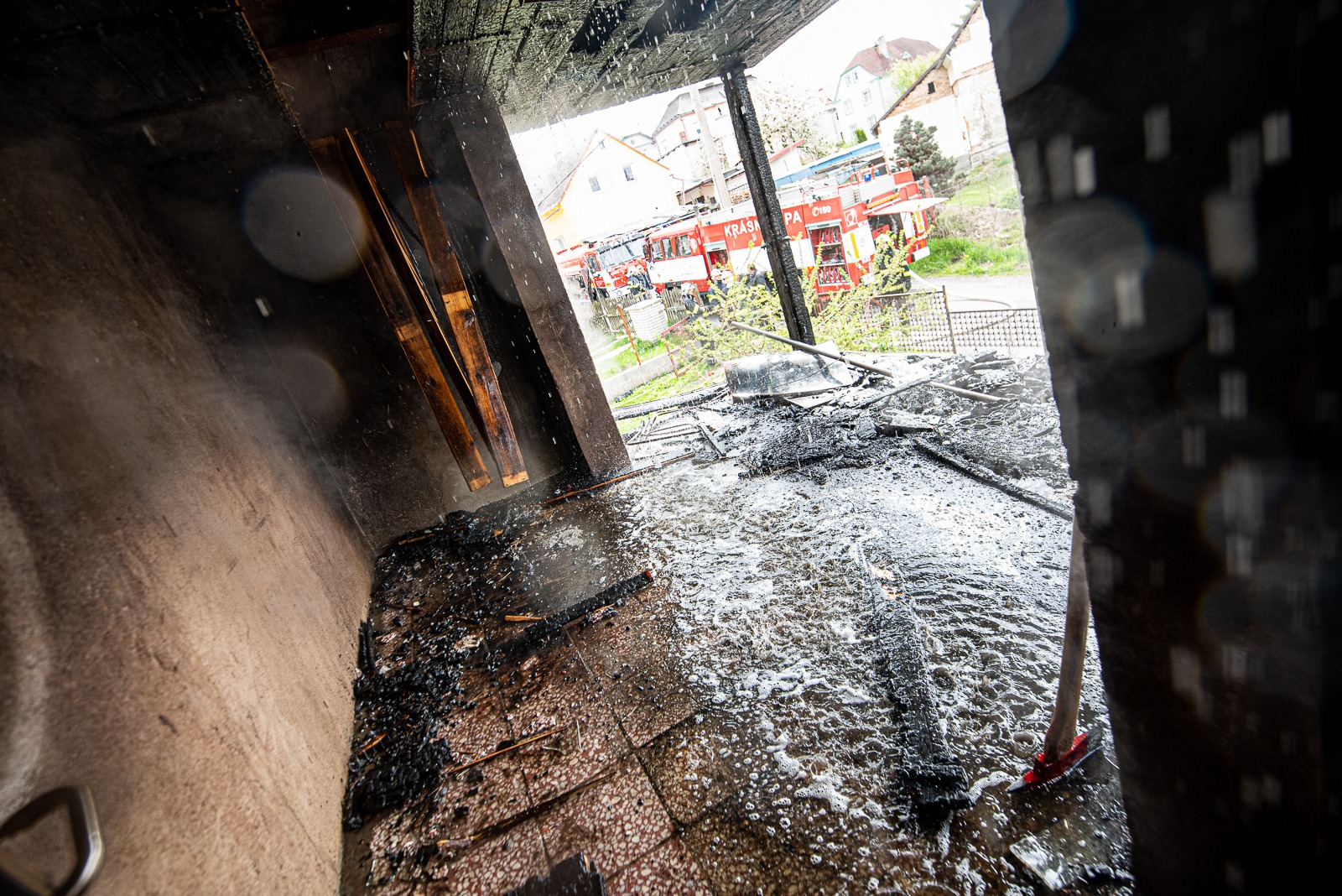 Požár přístavku na domě v Krásné Lípě