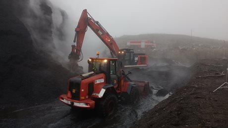 Teplota uvnitř hromady se stále pohybuje mezi 15 a 90 °C. Hasiči společně se zaměstnanci skládky postupně rozhrabávají zasažený materiál, který následně ponořují do vodní laguny a po ochlazení převážejí na jinou část areálu. Na místě aktuálně zasahuje pět jednotek požární ochrany a čtrnáct hasičů.