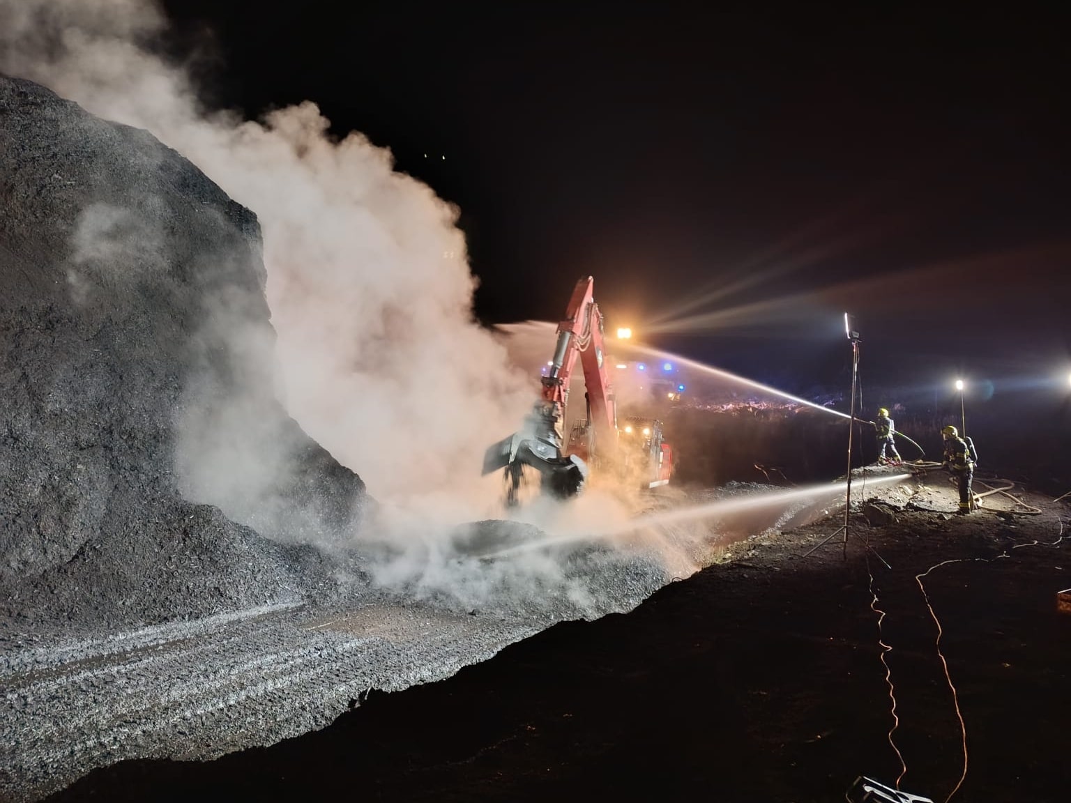 Kvůli rozsahu požáru a charakteru materiálu byla na místo povolána těžká technika Záchranného útvaru HZS ČR a také chemická laboratoř z Třemošné. Hasiči rozhrabávali hořící hromadu pomocí čelních nakladačů a pásové techniky, aby se dostali ke skrytým ohniskům. Materiál byl následně proléván vodou a odvážen na bezpečné místo.