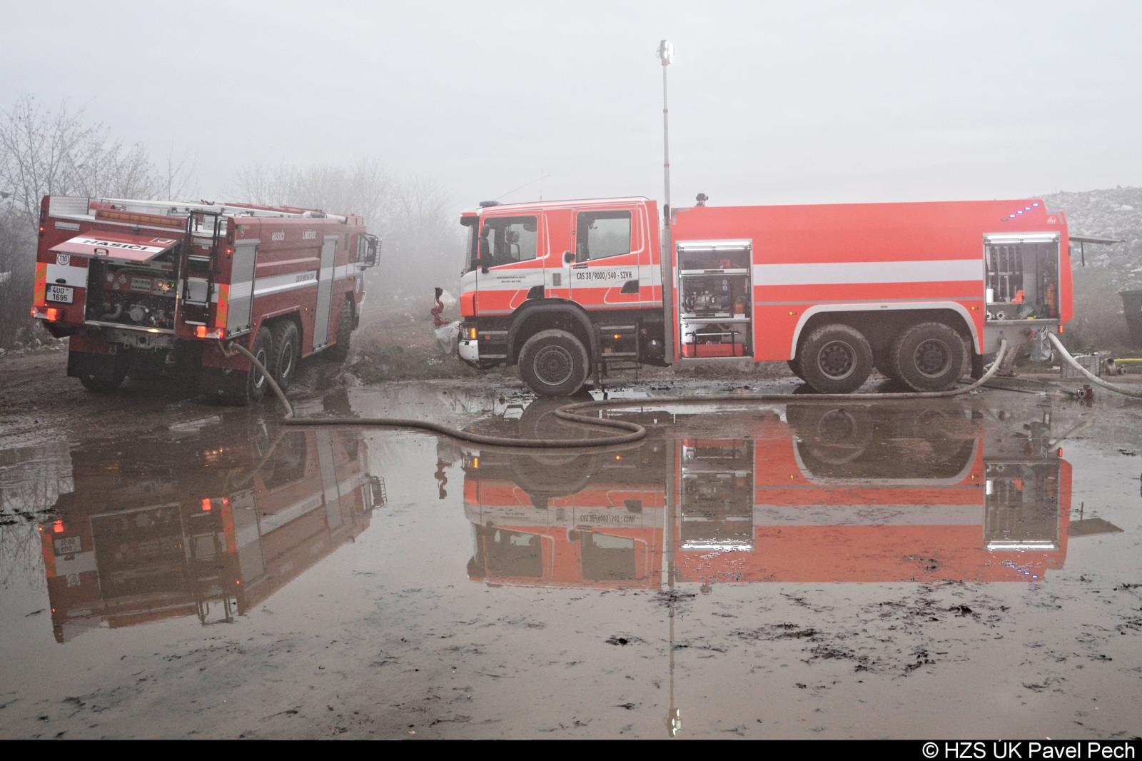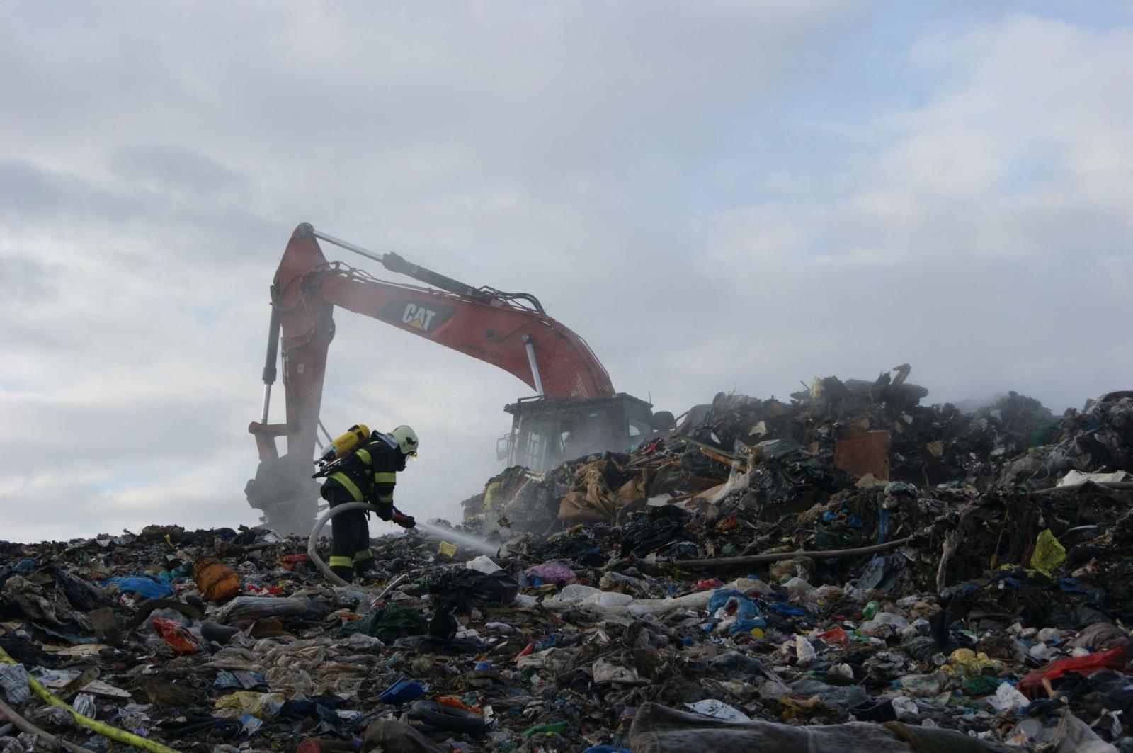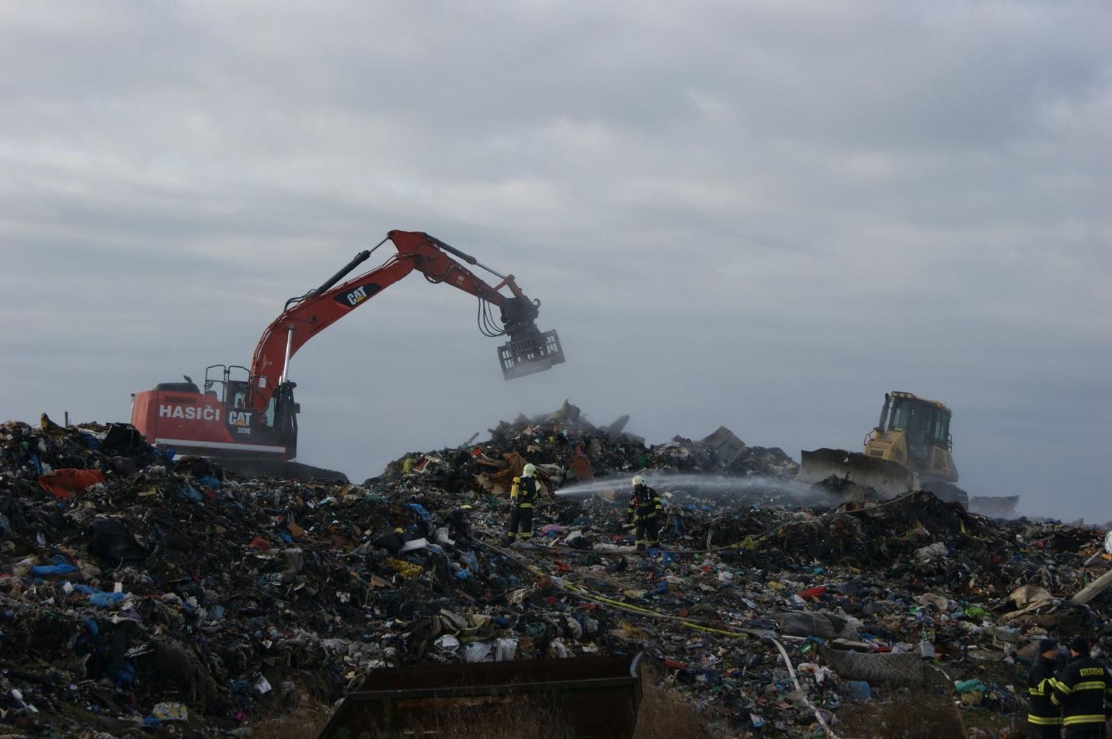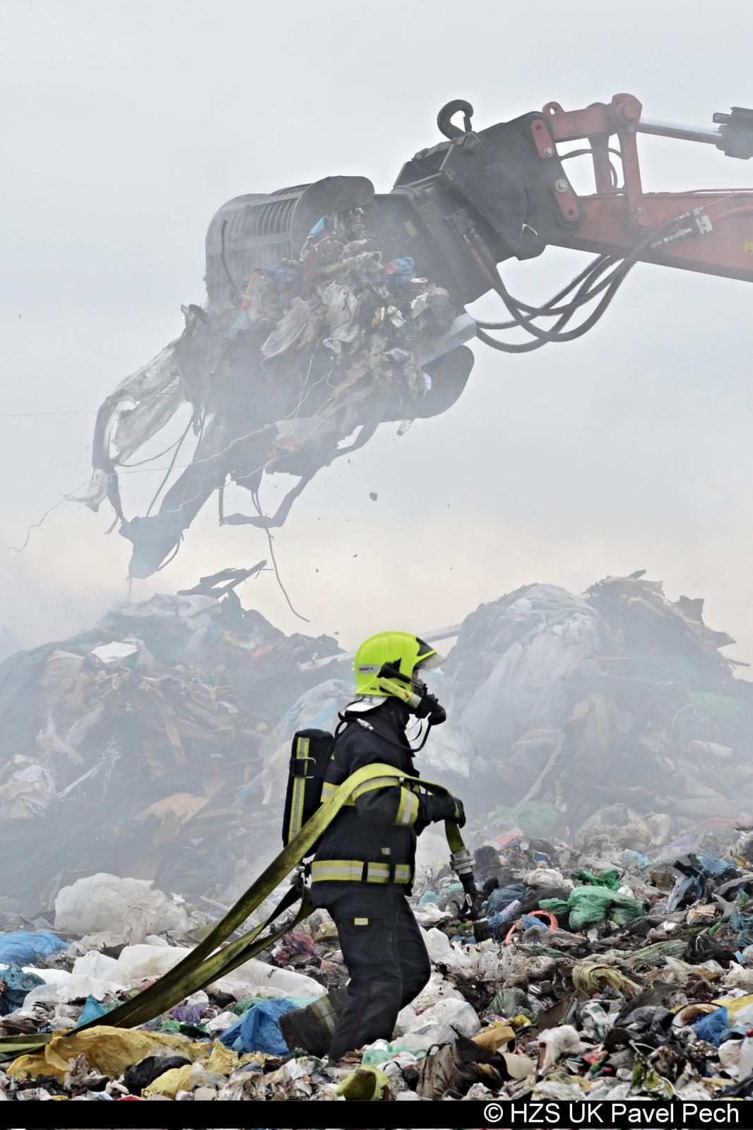Požár skládky komunálního odpadu Želechovice