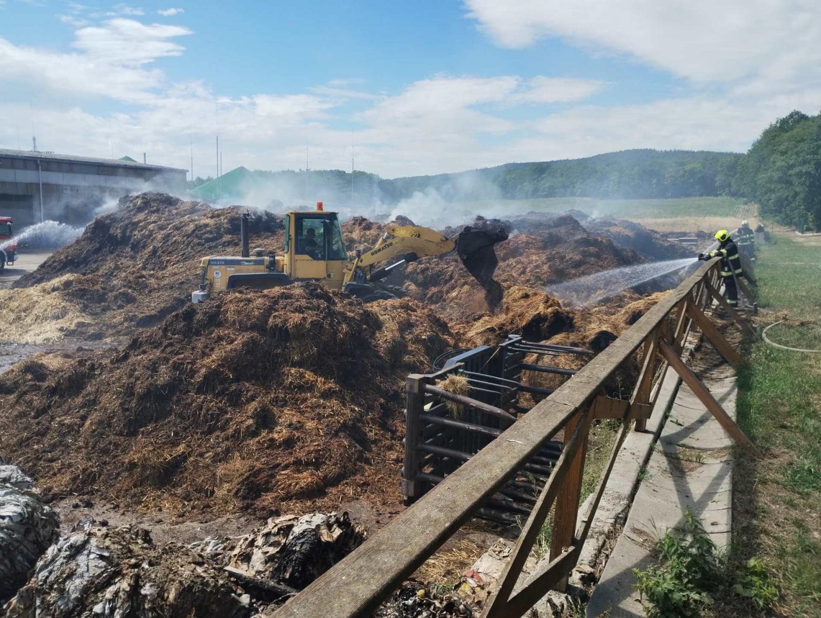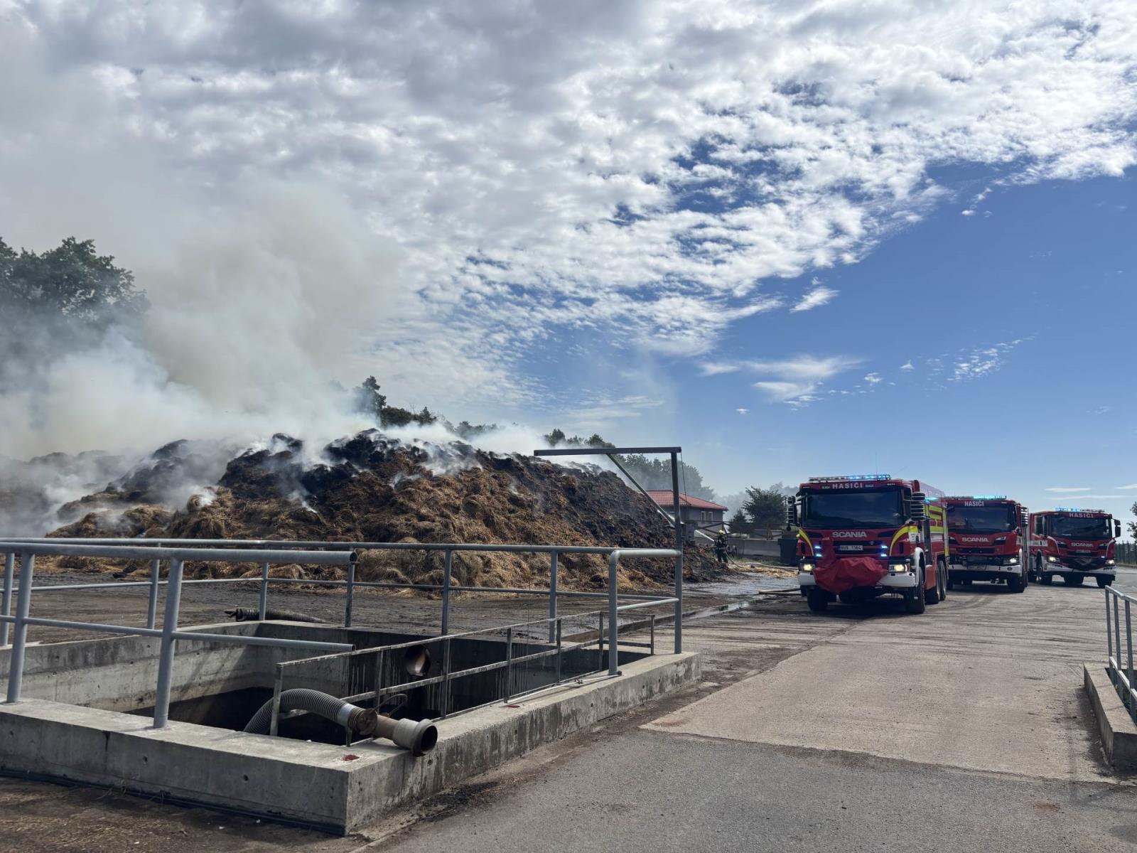 Požár skládky v bioplynové stanici v Zelené na Chomutovsku
