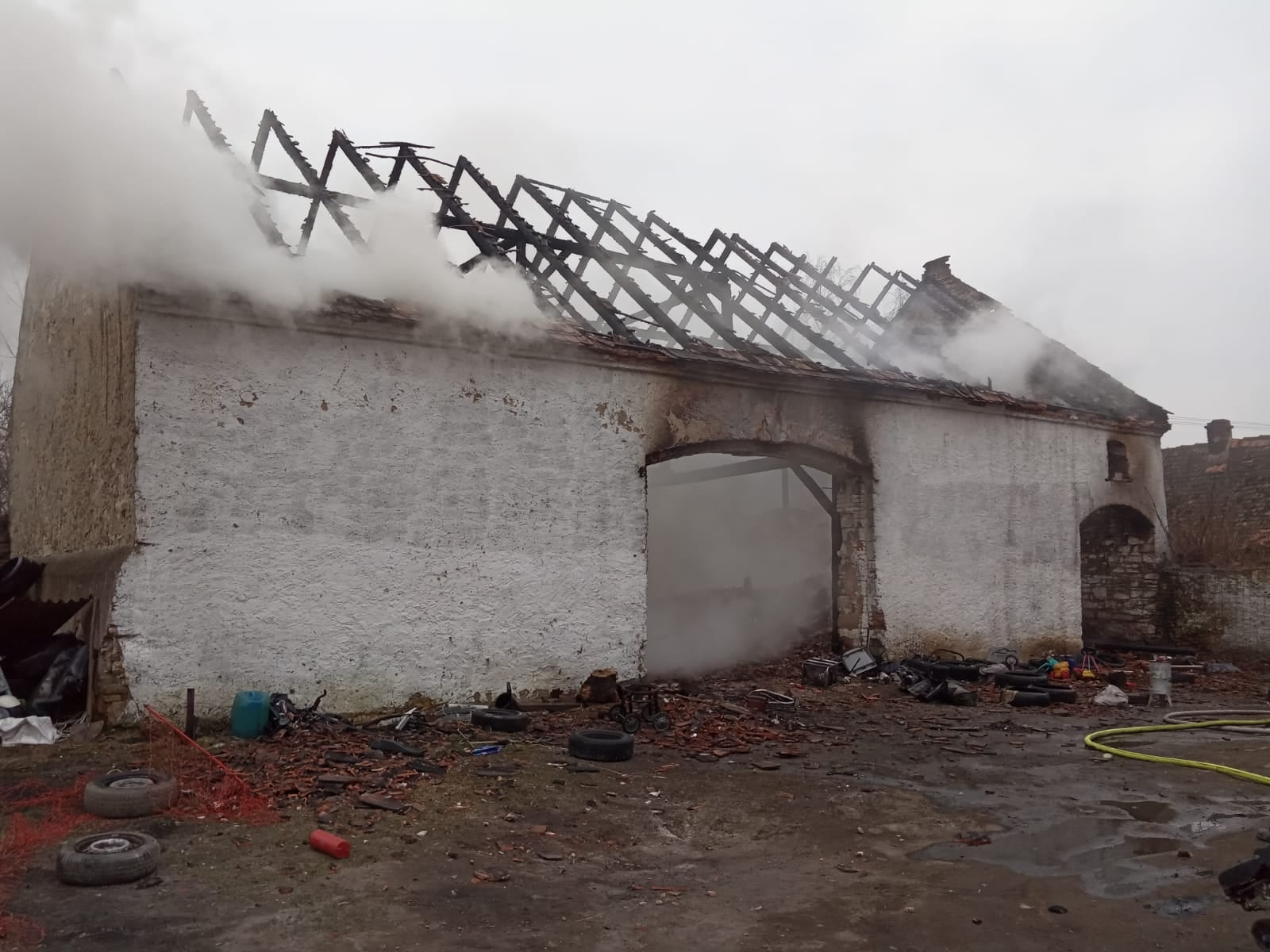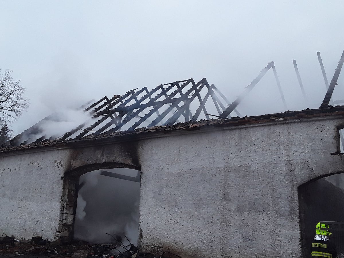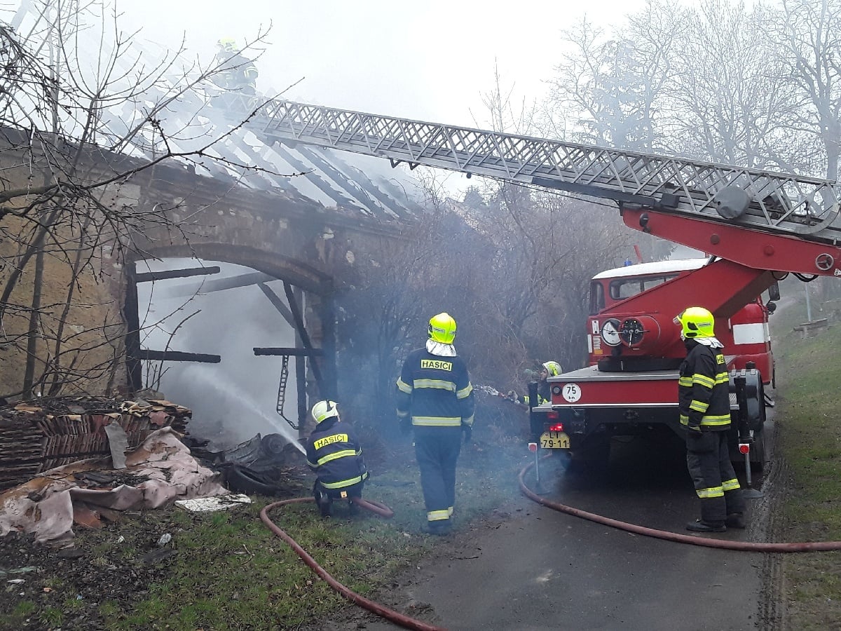 Požár střechy stodoly v Ředhošti