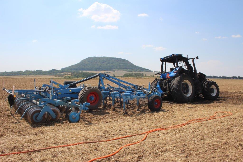 Požár traktoru na poli u Krabčic v Ústeckém kraji