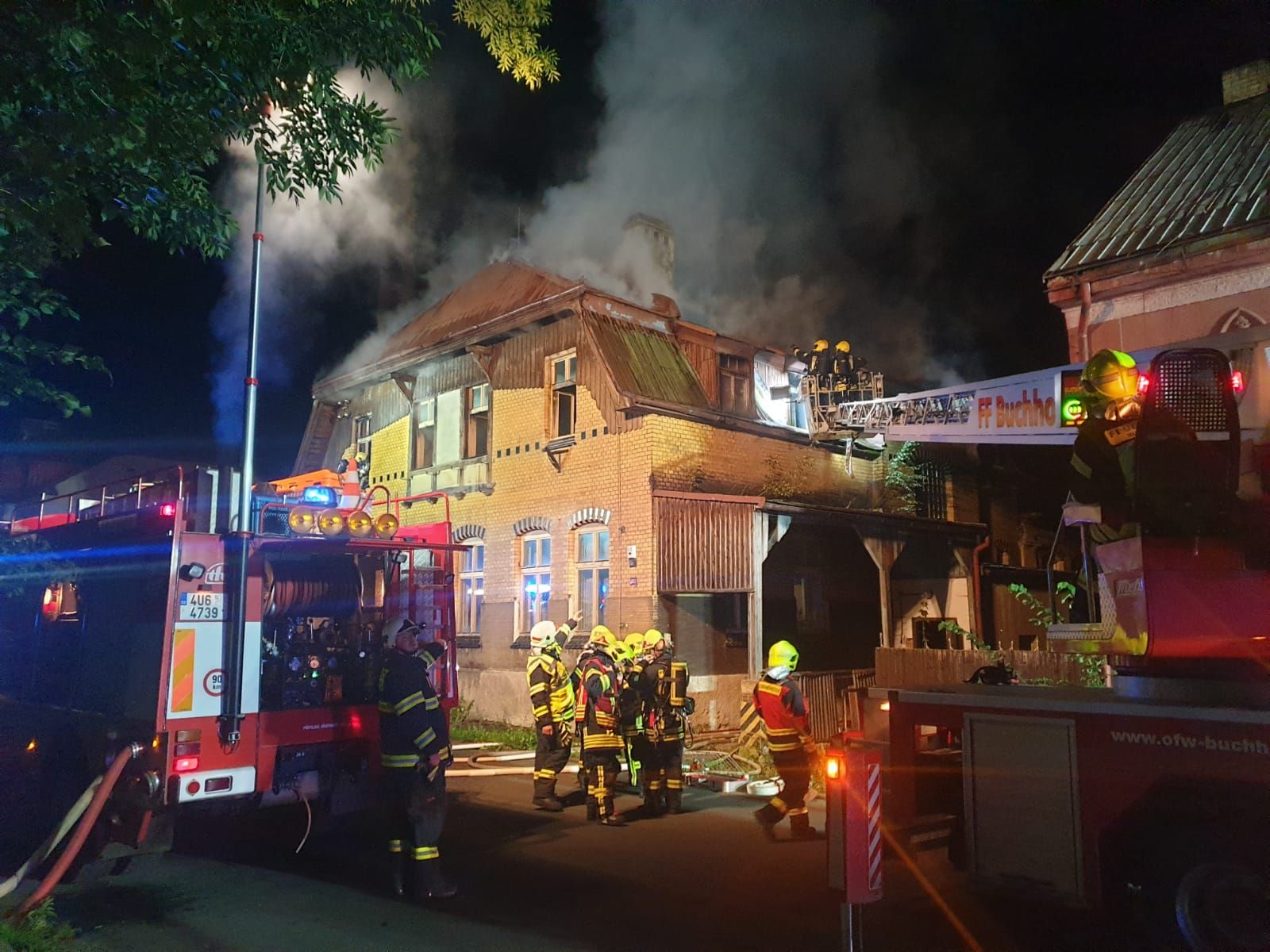 Požár tří budov ve Vejprtech