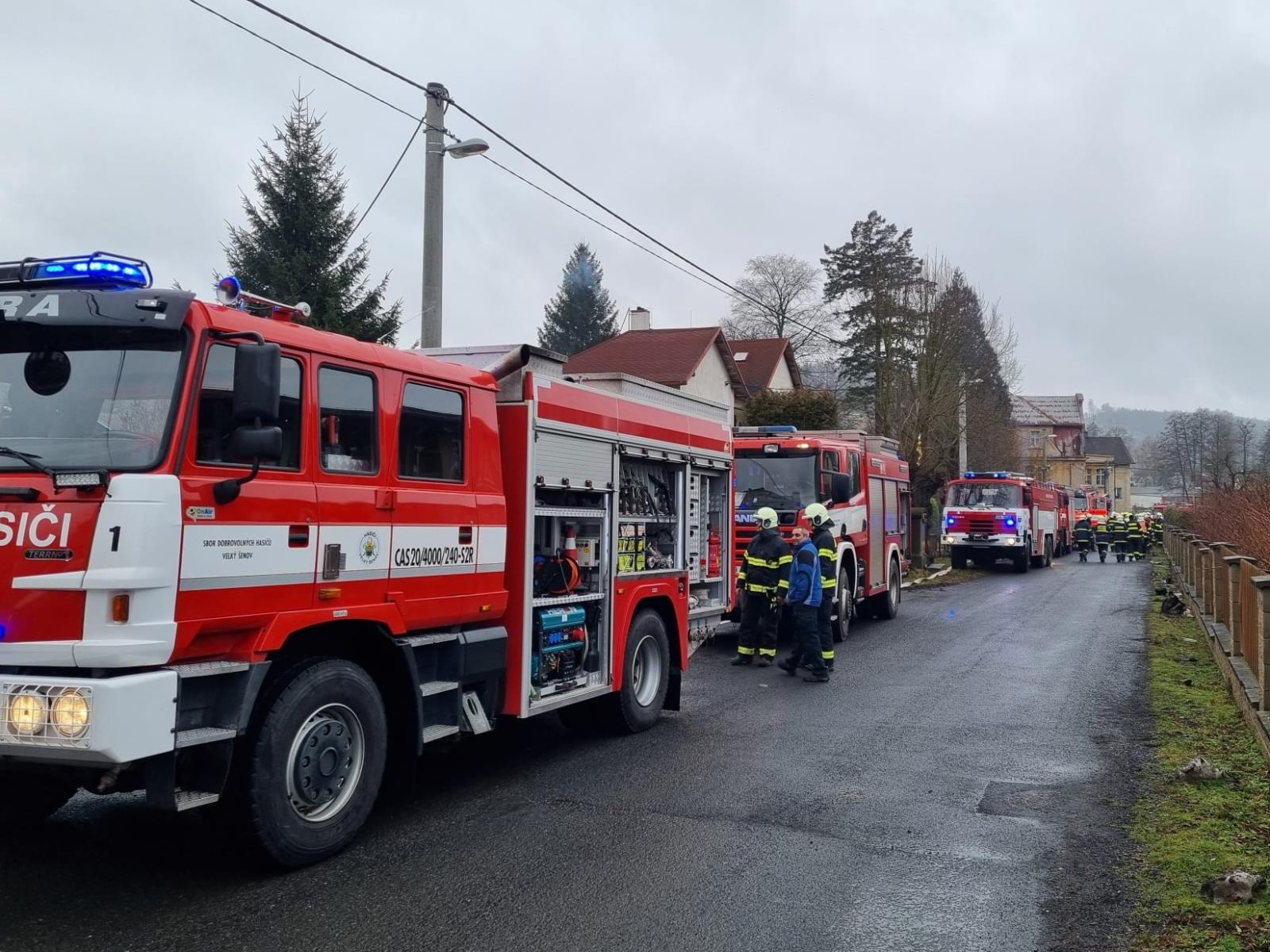 12. 2. 2023 ve 12:26 hodin. Hasiči ze stanice Šluknov a dobrovolní hasiči obcí Velký Šenov, Šluknov, Vilémov, Dolní Poustevna a Mikulášovice zasahovali v domě s pečovatelskou službou ve Velkém Šenově na Děčínsku. Žhnoucí deku ležící na elektrickém sporáku vynesli před budovu a uhasili. Hasiči ze zakouřených prostor evakuovali 13 klientů a prostory odvětrali pomocí přetlakové ventilace. Při zásahu nedošlo ke zranění.